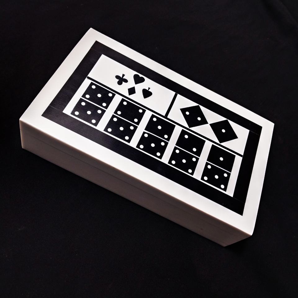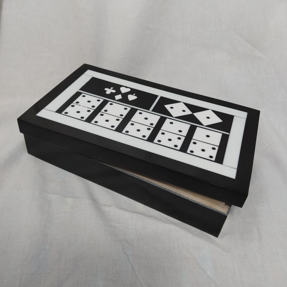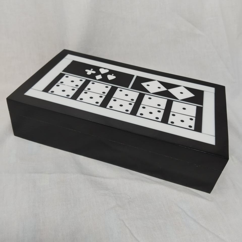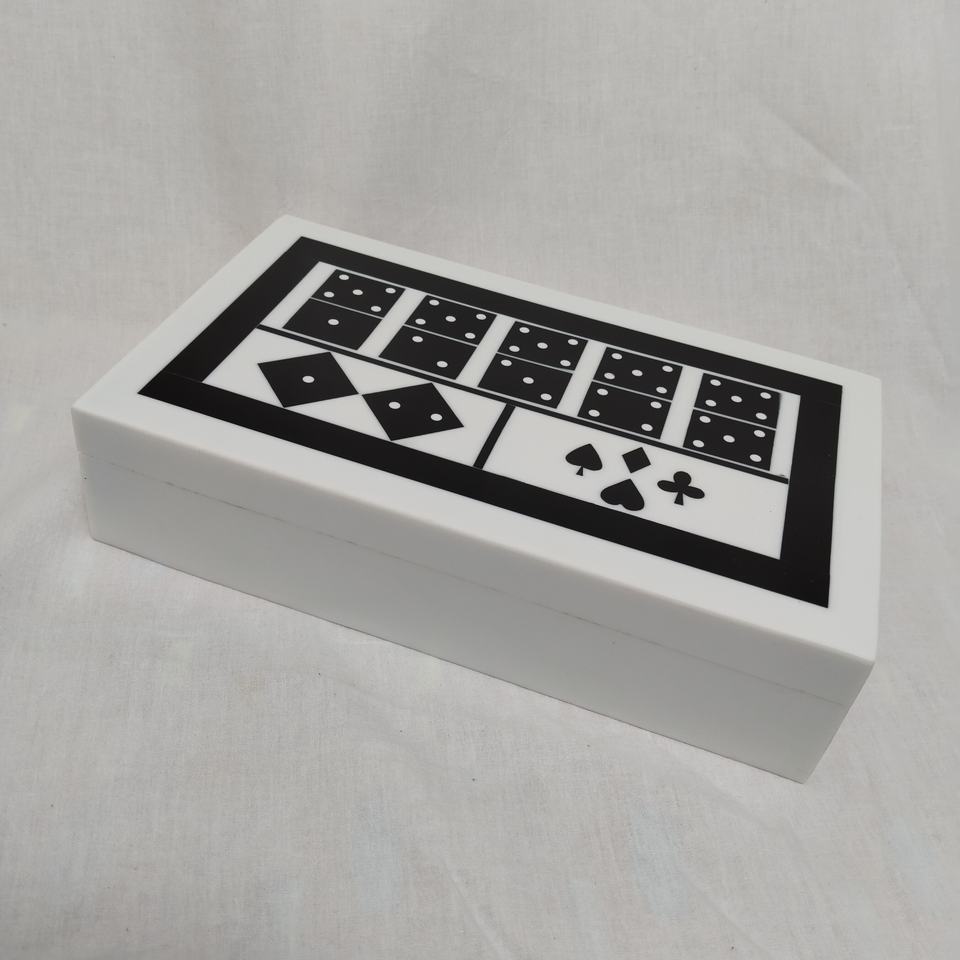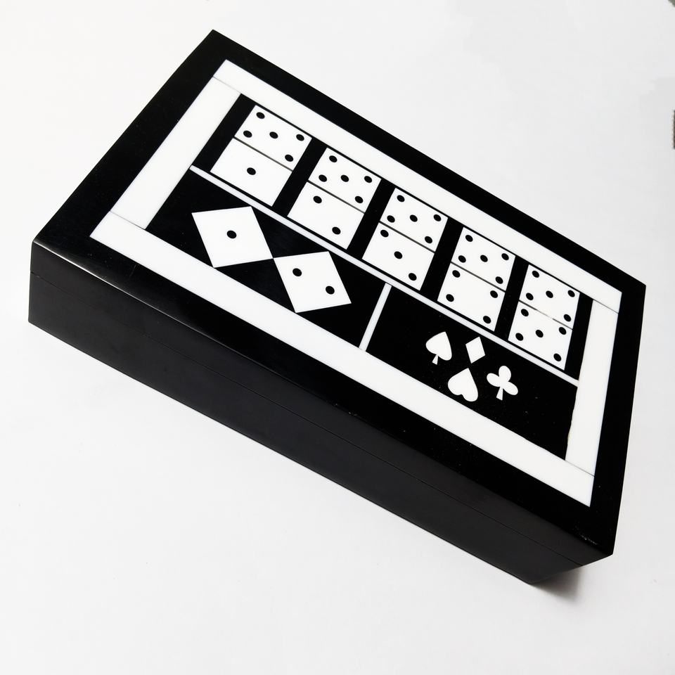 ชุดโดมิโนเรซิ่นสีดำขาวทันสมัย พร้อมกล่องเก็บลายการ์ดและลูกเต๋า ของตกแต่งโต๊ะสุดหรู เกมสำหรับการสังสรรค์ในครอบครัว