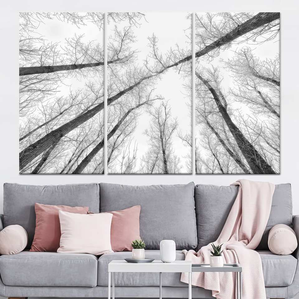 ศิลปะบนผืนผ้าใบลายต้นไม้สีดำและสีขาวสมัยใหม่: ของตกแต่งผนังพิมพ์ลายอย่างหรูหรา, ผ้าใบพิมพ์ลาย 3 ชิ้น