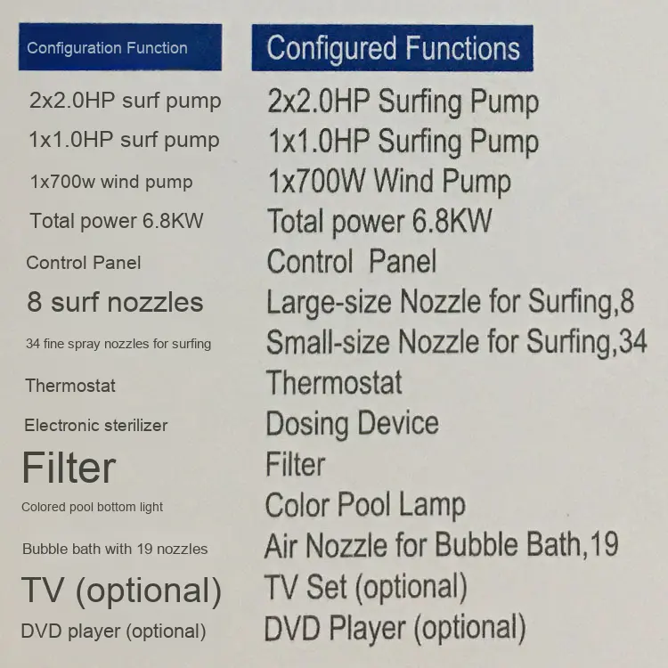 สระว่ายน้ำสปาอะคริลิคสีฟ้าที่ทันสมัยอุณหภูมิคงที่แกว่งได้คุณสมบัติว่ายน้ำกลางแจ้งสำหรับโรงแรมห้องน้ำสั่งขั้นต่ำ