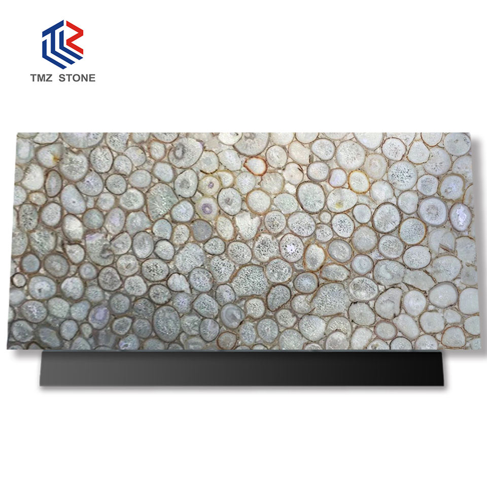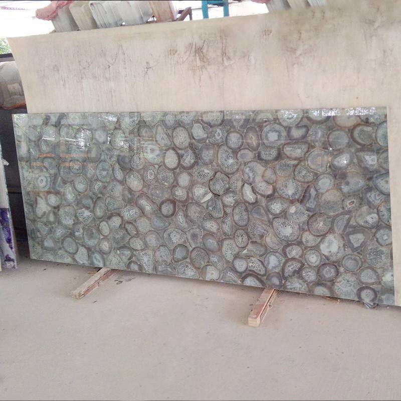 แผงผนังอาเกตสีฟ้าทันสมัยแผ่นหินอ่อน backlit สำหรับบ้านโรงแรมการออกแบบตกแต่งภายในพื้นผิวขัดเงาคุณลักษณะทางสถาปัตยกรรม