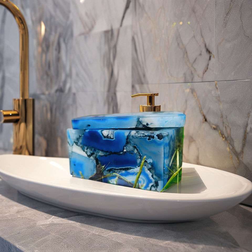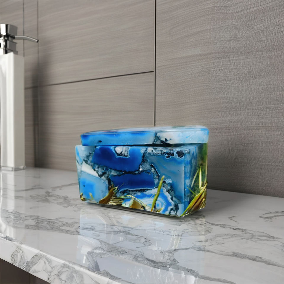 กล่องใส่เครื่องประดับทรงสี่เหลี่ยมผืนผ้าทำจากอาเกตบราซิลสีน้ำเงินทันสมัย พร้อมถุงกันน้ำ สำหรับตกแต่งบ้าน ใช้ในงานแต่งงานหรือวันเกิด