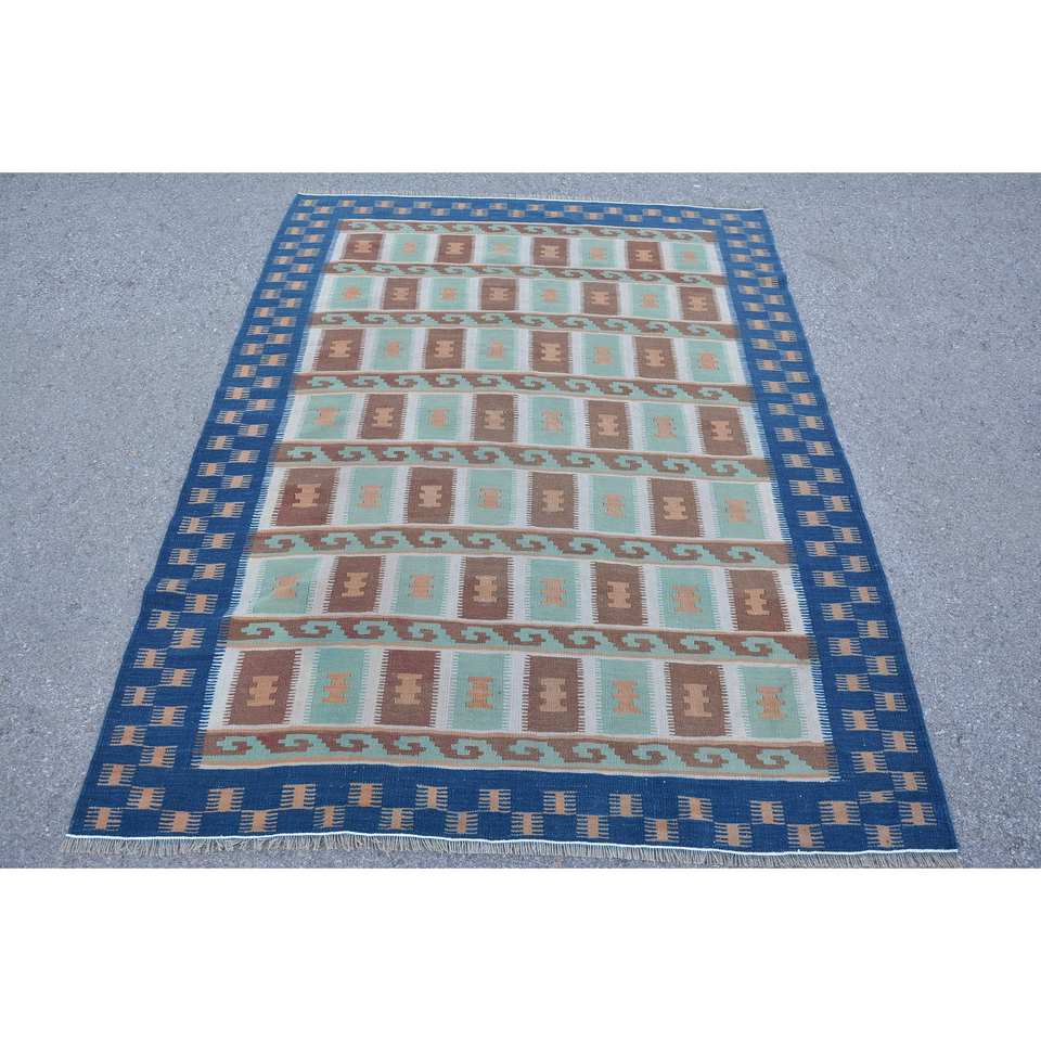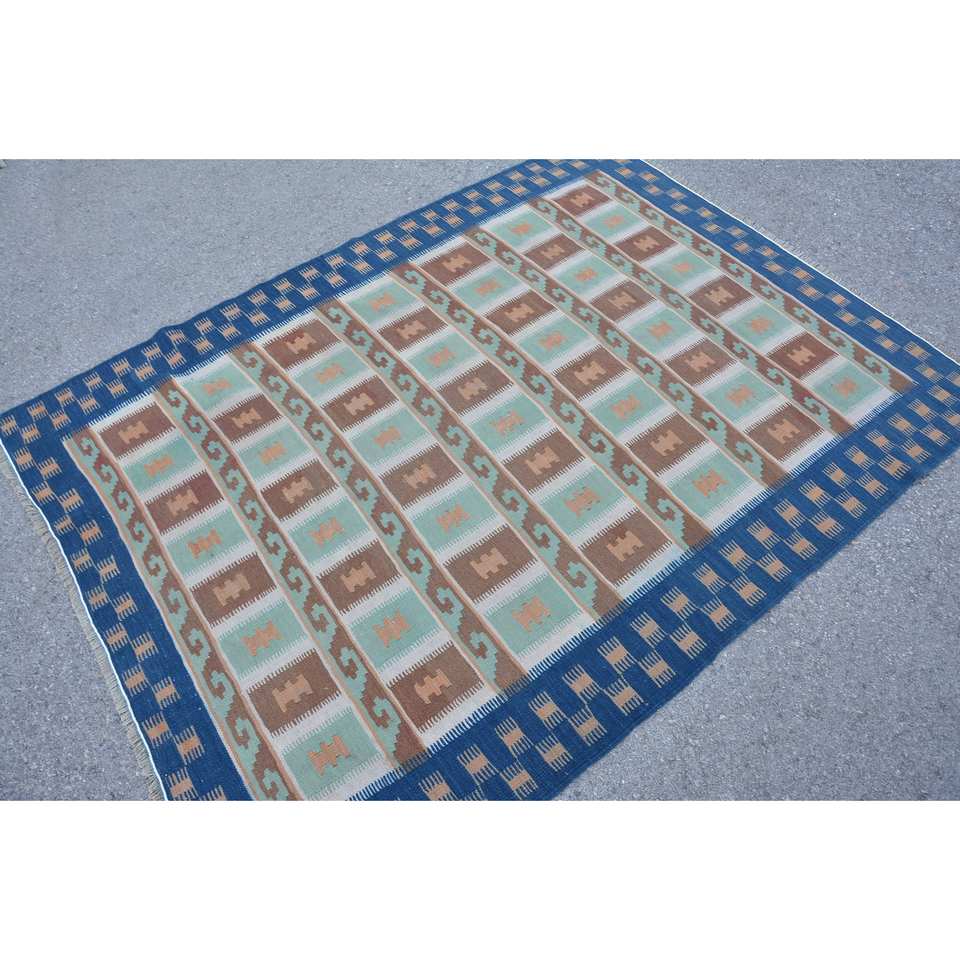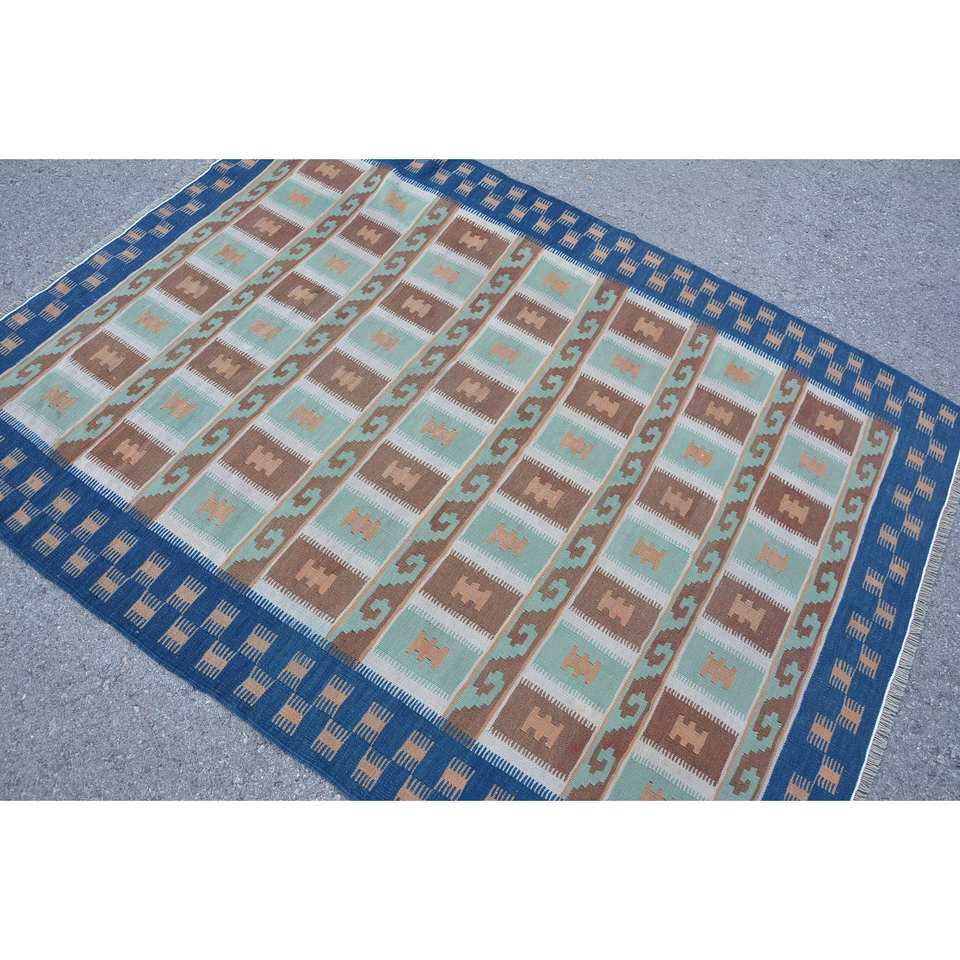 พรมขนสัตว์สีน้ำตาล4.7x6.2ฟุตทำด้วยมือทรงสี่เหลี่ยมผืนผ้าสไตล์ตุรกีย้อนยุค