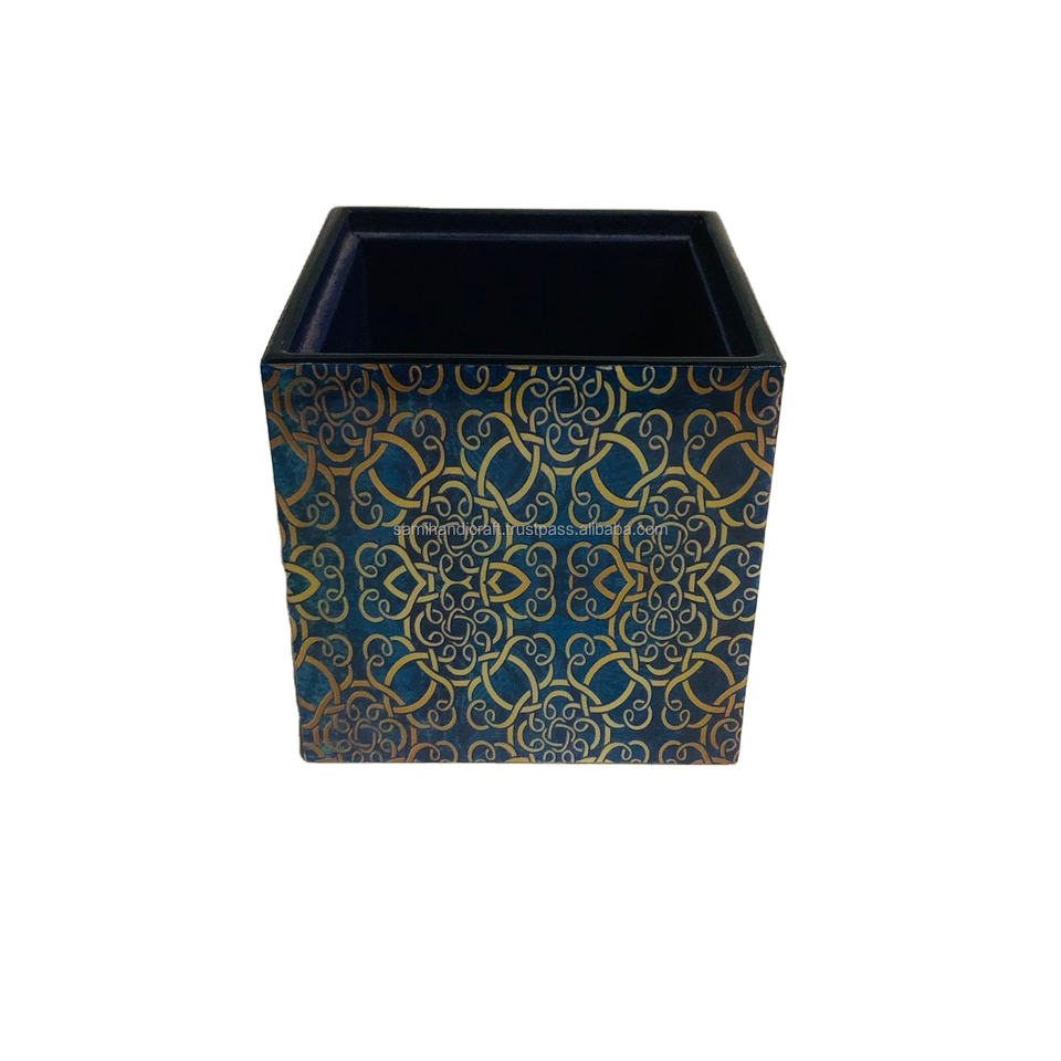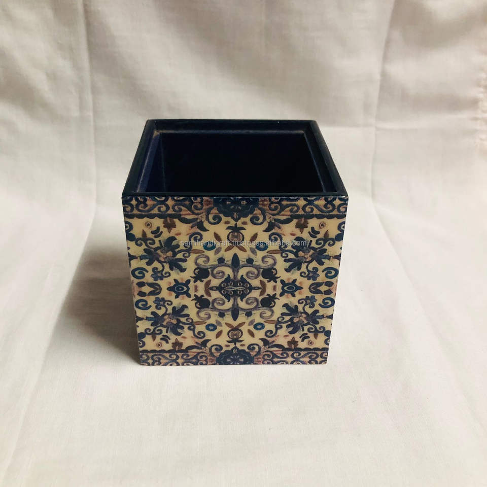 กระป๋องไม้พร้อมฝาดอกไม้สีน้ำเงินดีไซน์ใหม่พาสต้าที่เก็บผลไม้แห้งสไตล์คลาสสิก