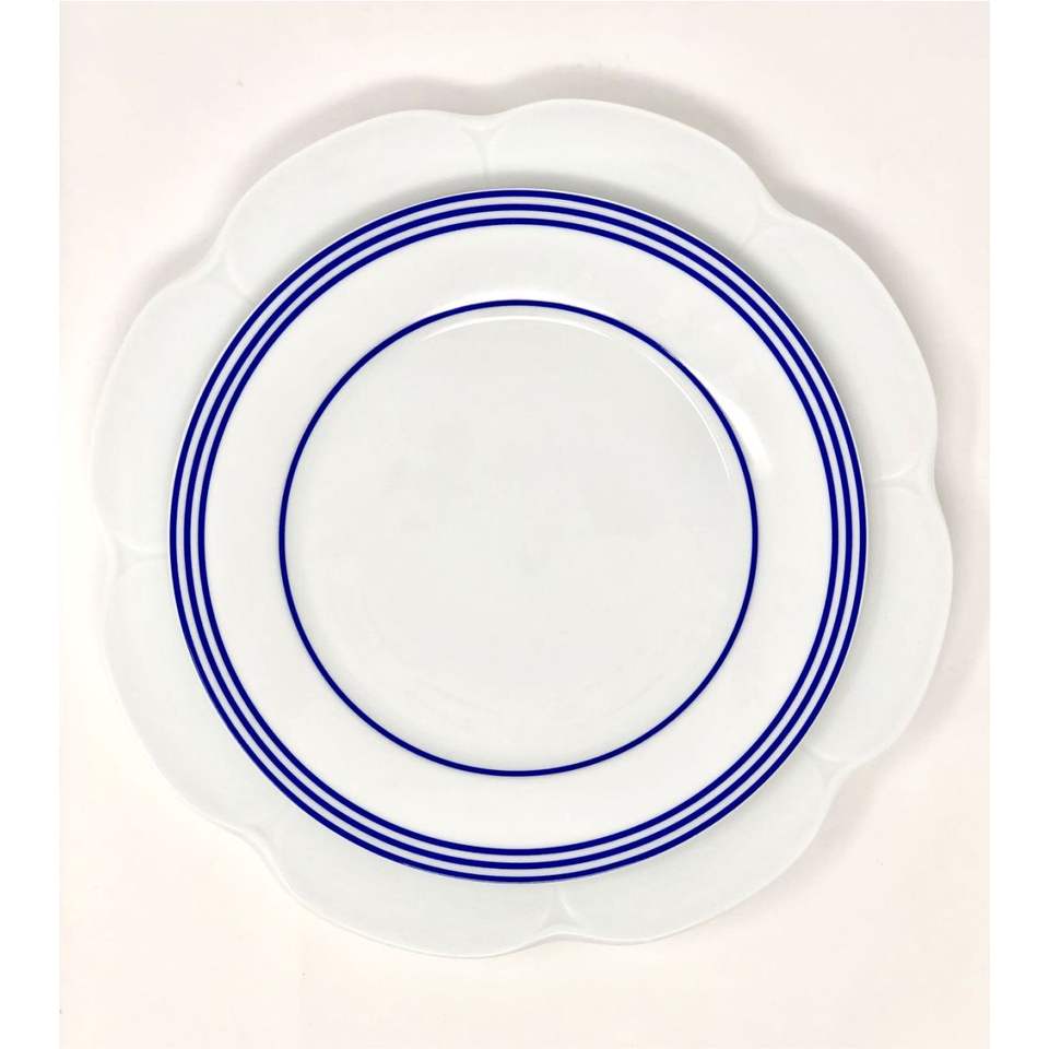 จานรองอาหารขอบหยักสีน้ำเงินทันสมัย | จานโลหะคุณภาพสูงสำหรับโรงแรมหรู สไตล์เมดิเตอร์เรเนียน