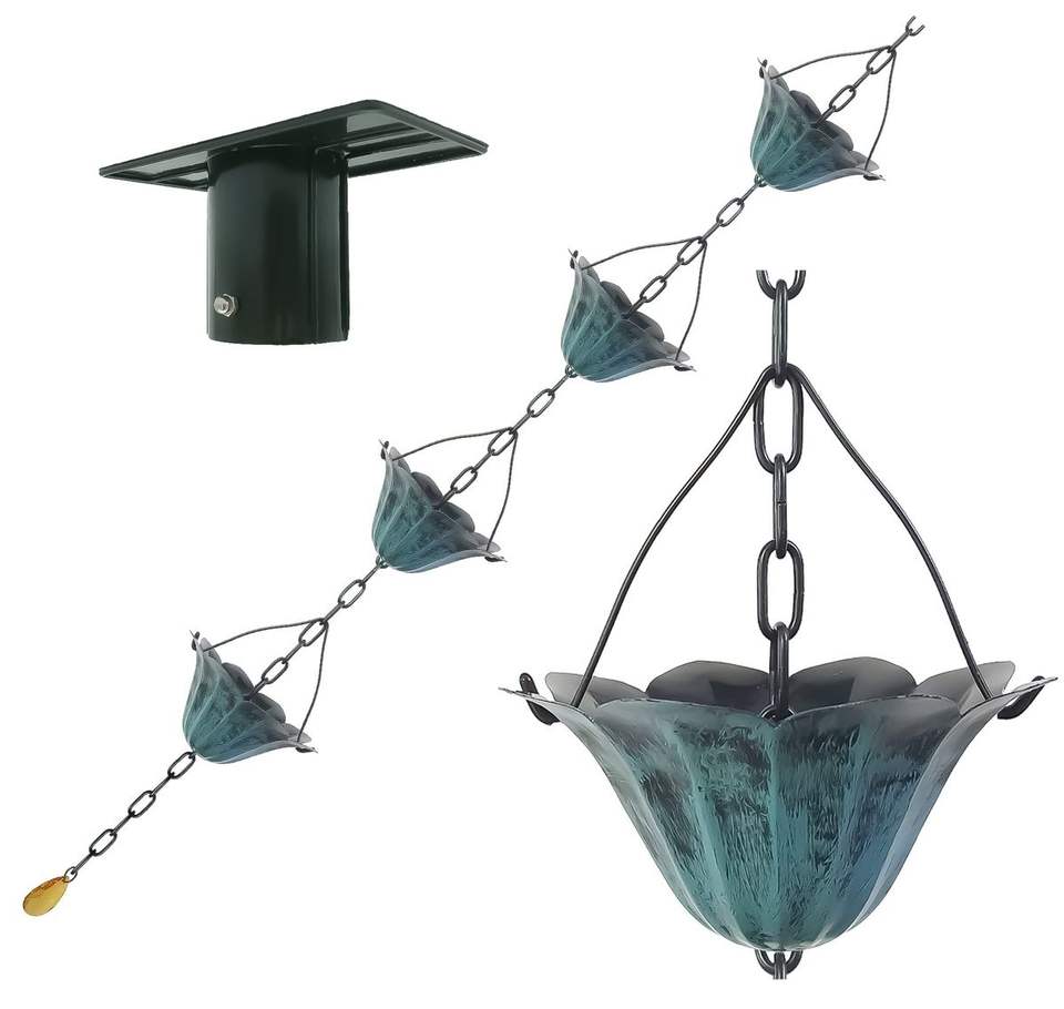 โซ่โลหะรูปดอกบัวสีน้ำเงินสมัยใหม่สำหรับตกแต่งสวนแบบศิลปะ พร้อมคุณสมบัติเป็นรางน้ำตก