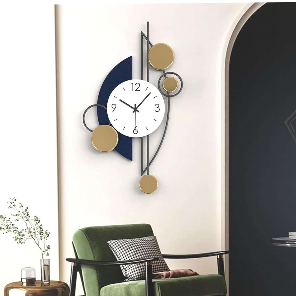 นาฬิกาแขวนผนังลายดาวสีน้ำเงินสไตล์โมเดิร์น นาฬิกาโลหะตกแต่งสไตล์มิดเซ็นจูรี่ ดีไซน์หรูหรา