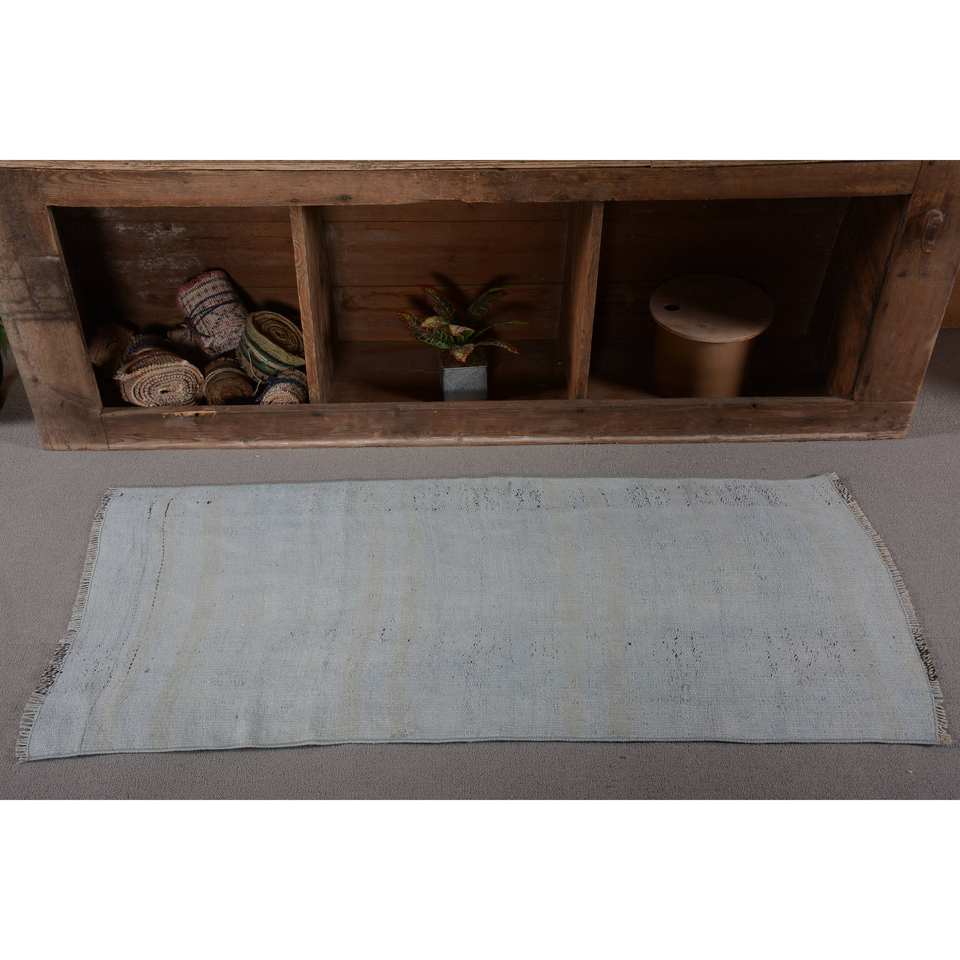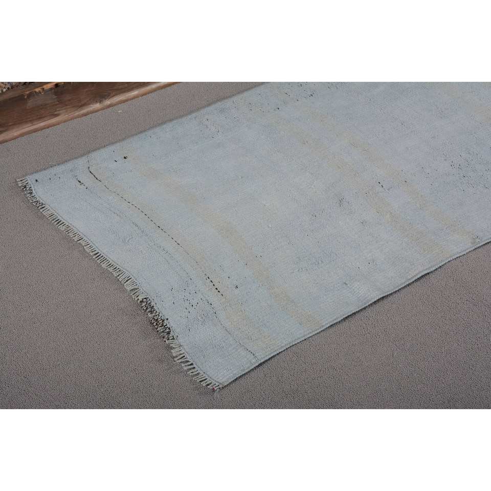 พรมตุรกีโบราณสีฟ้าทันสมัยความสูง2.2x4.8ฟุตทำจากผ้าขนสัตว์วัสดุขนสัตว์เย็บปะติดปะต่อกันเป็นรูปสี่เหลี่ยมผืนผ้าสำหรับห้องนั่งเล่นรถห้องโถง