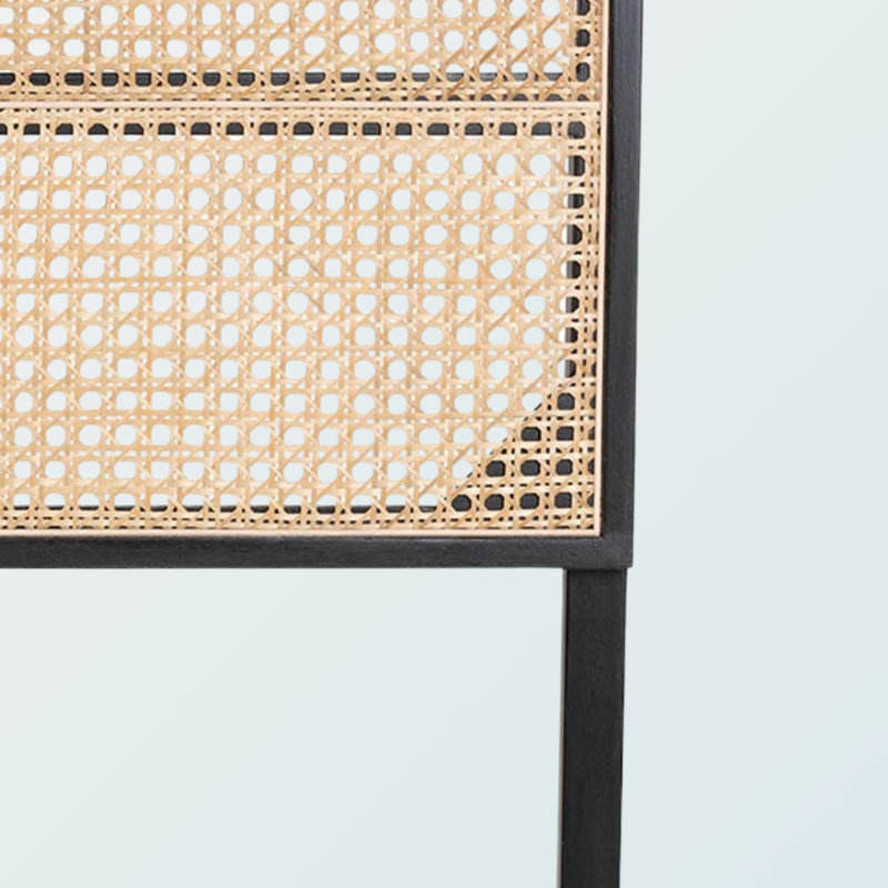 โครงเตียงขนาดคิงไซส์สไตล์โบฮีเมียนที่ทันสมัยทำจากไม้ไผ่ธรรมชาติและไม้ดาบปลายปืนหัวเตียงผนังสไตล์โลหะเฟอร์นิเจอร์สำหรับบ้าน