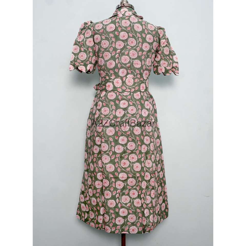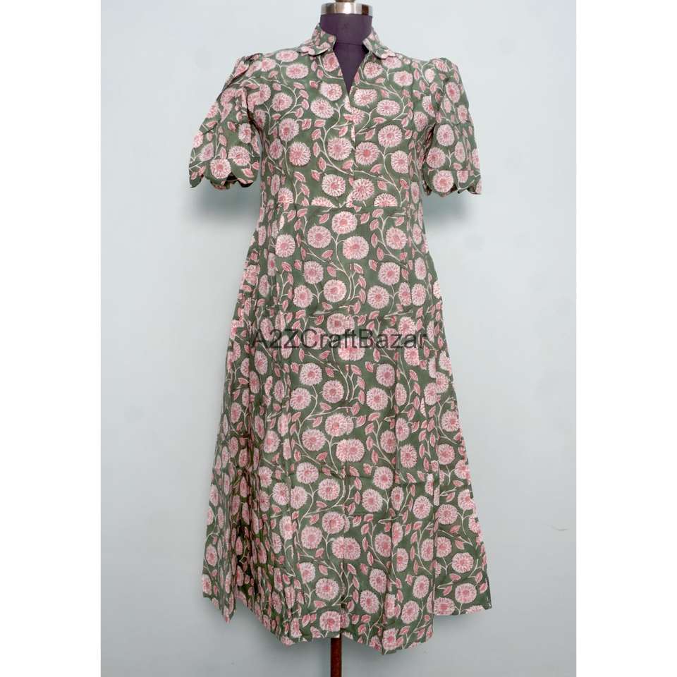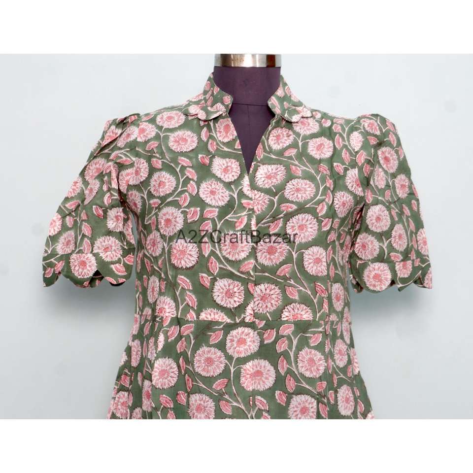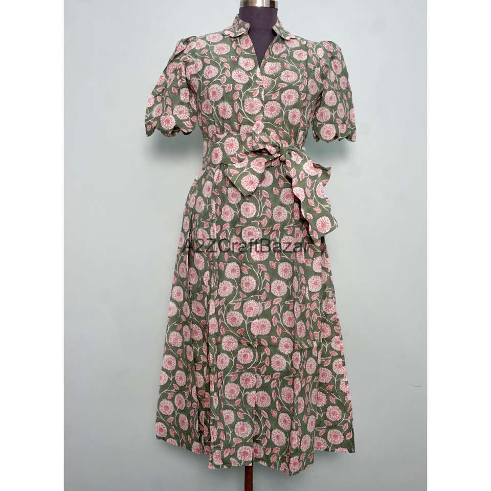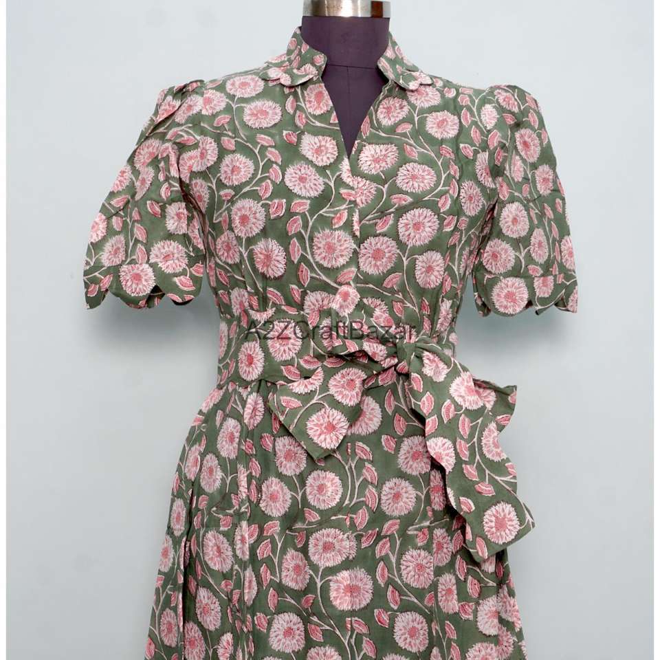 ชุดแต่งงานสไตล์โบฮีเมียนสมัยใหม่ ชุดเดรสยาวปานกลางสำหรับฤดูร้อน ลายดอกพิมพ์ด้วยมือบนผ้าฝ้าย ชุดลำลองทรงเอสำหรับผู้หญิง