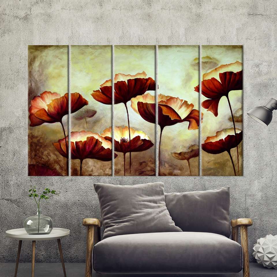 Modern Botanical Flowers Painting Canvas - Printed Artwork Decor,5P:Gallery Wrapped