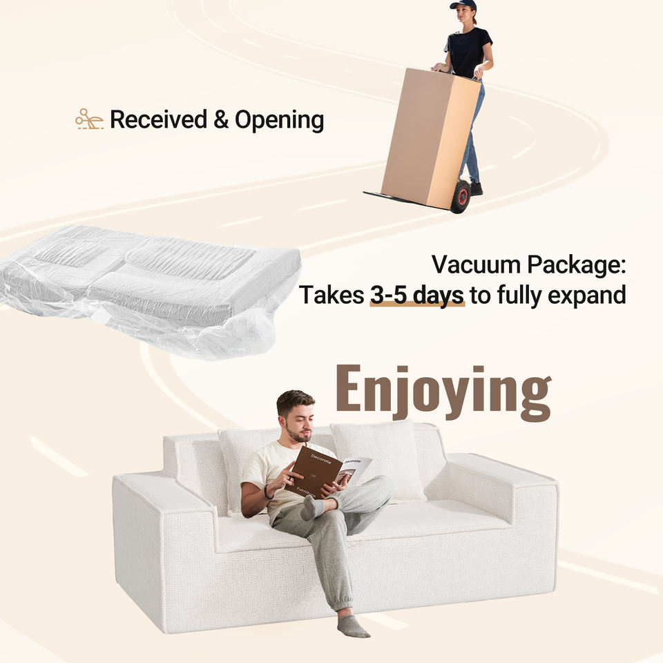 โซฟาเบดสามที่นั่งผ้าบูเคลเชนิลล์ทันสมัย ไม่ต้องประกอบ ไม่มีขา โซฟาคลาวด์ หมอนถอดได้ ไส้ฟองน้ำ ปรับเป็นเตียงนวดได้