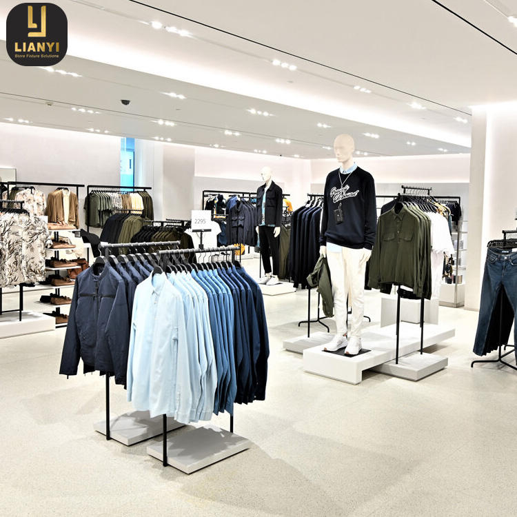 การออกแบบตกแต่งร้านบูติกสมัยใหม่ ชั้นวางโชว์เสื้อผ้าซาร่า เฟอร์นิเจอร์ร้านค้า