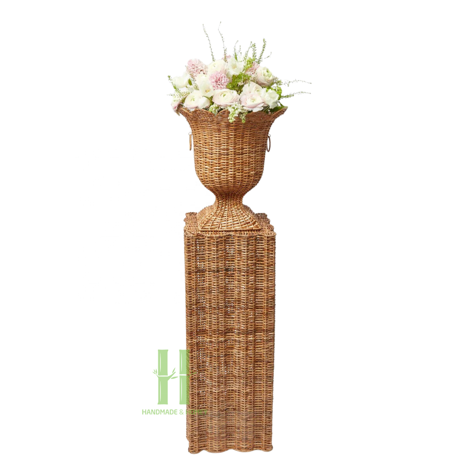 โกศถักทันสมัยพร้อมฐานกลมสูงแจกันหวายสานด้วยมือสำหรับตกแต่งโต๊ะดีไซน์หลากหลาย OEM ในโรงงานเวียดนาม