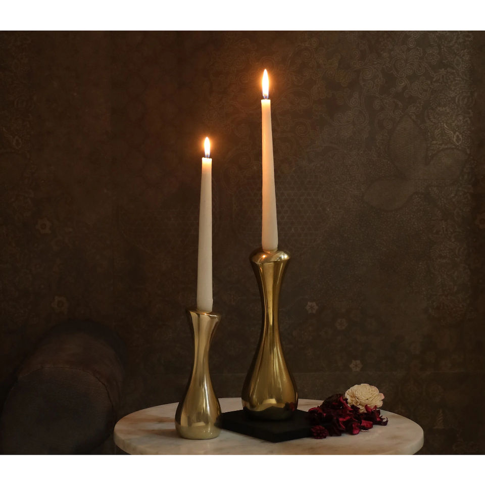 ชุดเชิงเทียนทองเหลืองแบบทันสมัยเชิงเทียนโลหะสีทองแบบมินิมอลส์ตกแต่งบ้านกลางโต๊ะและห้องนั่งเล่น