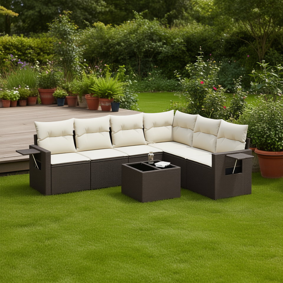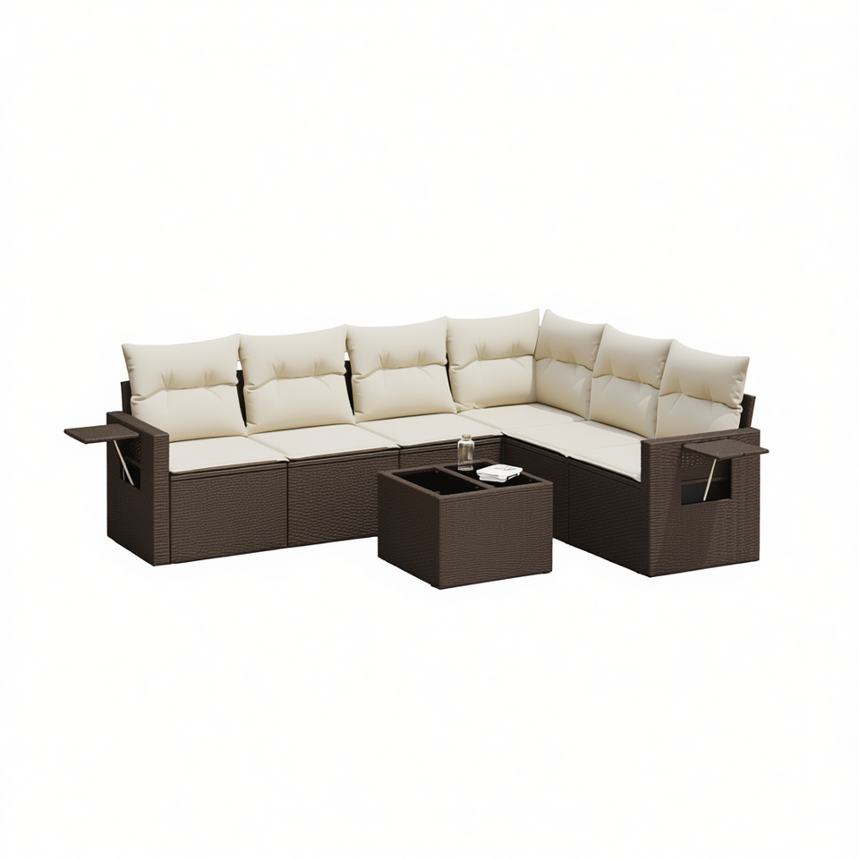 ชุดโซฟาหวายสีน้ำตาลทันสมัยสำหรับสวน แบบโมดูลาร์ เฟอร์นิเจอร์กลางแจ้งพร้อมเบาะโฟมความหนาแน่นสูง สำหรับใช้ในลานบ้าน