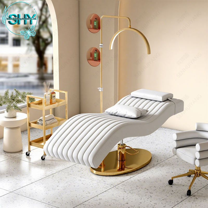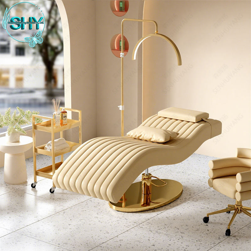 เตียงต่อขนตาหนังสังเคราะห์สีน้ำตาลทันสมัย เฟอร์นิเจอร์ร้านเสริมสวย เตียงสปาโค้ง เตียงเสริมความงาม เตียงพับได้สุดหรูสำหรับต่อขนตา