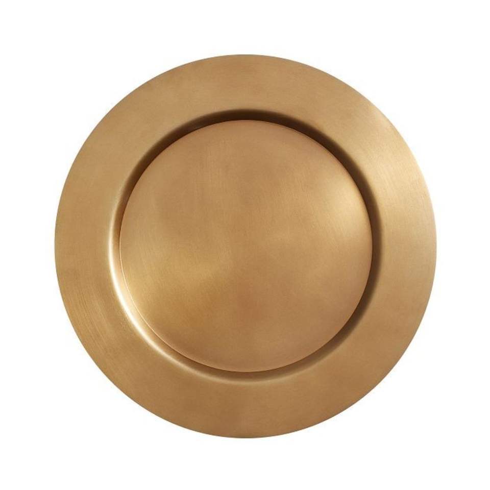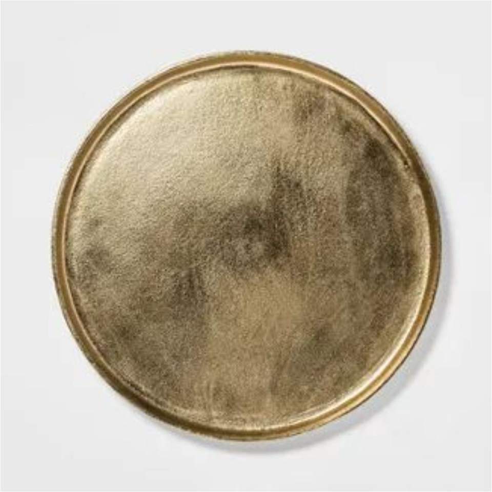 จานรองอาหารสีทองขัดเงาแบบทันสมัย จานโลหะทนทานทรงกลม สำหรับโรงแรม ร้านอาหาร ตกแต่งโต๊ะบ้าน งานแต่งงาน