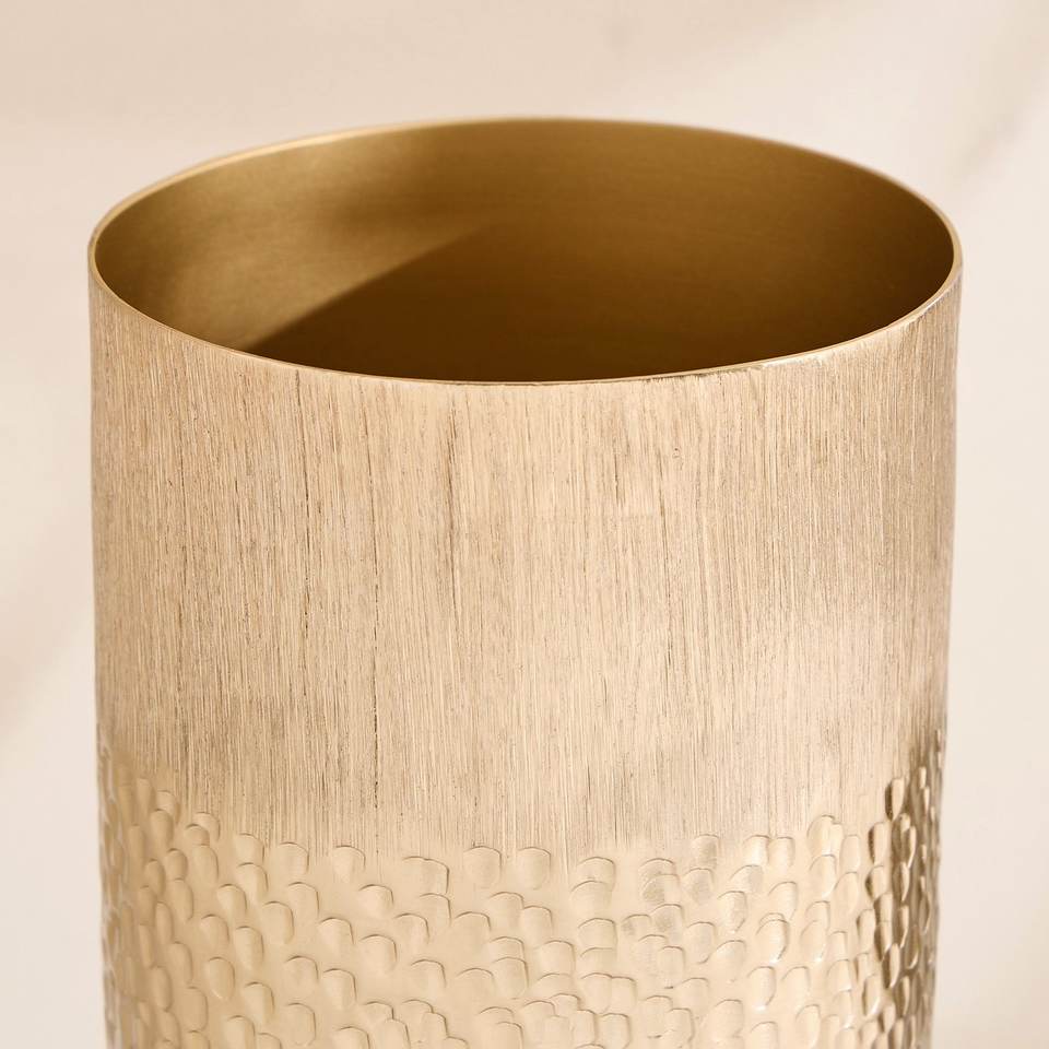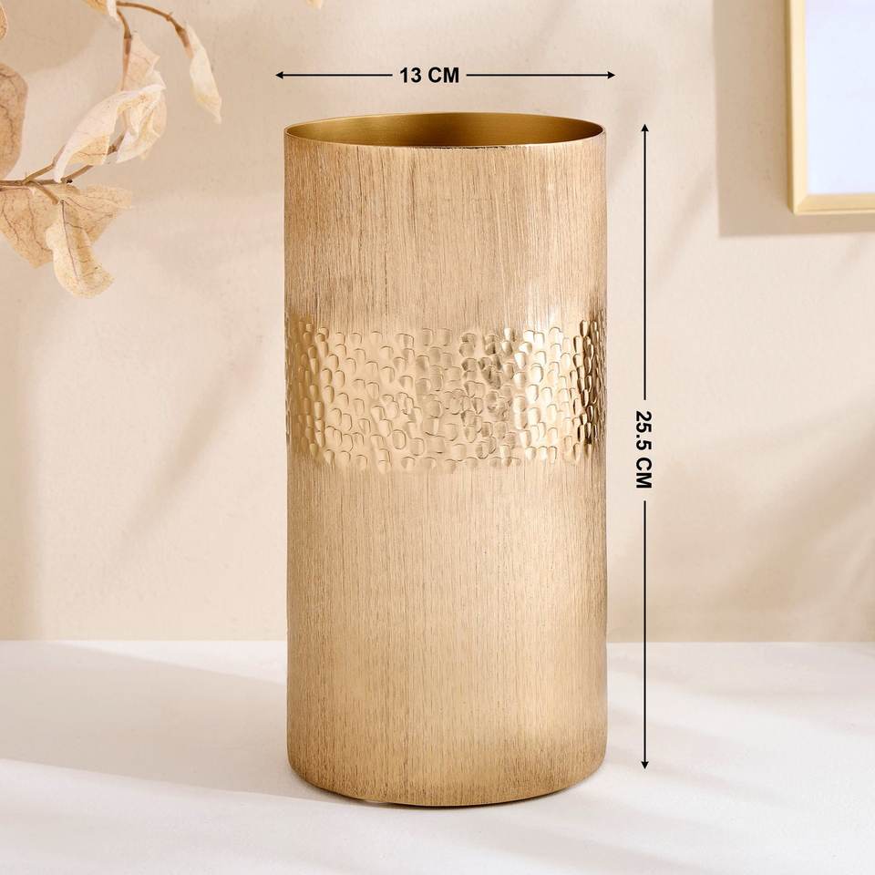แจกันโลหะทรงกระบอกสีทองขัดเงาแบบโมเดิร์น ลายตอกกลาง หรูหรา สไตล์อินดัสเทรียล งานฝีมือ สำหรับงานแต่งงาน ป้องกันสนิม ทำด้วยมือ