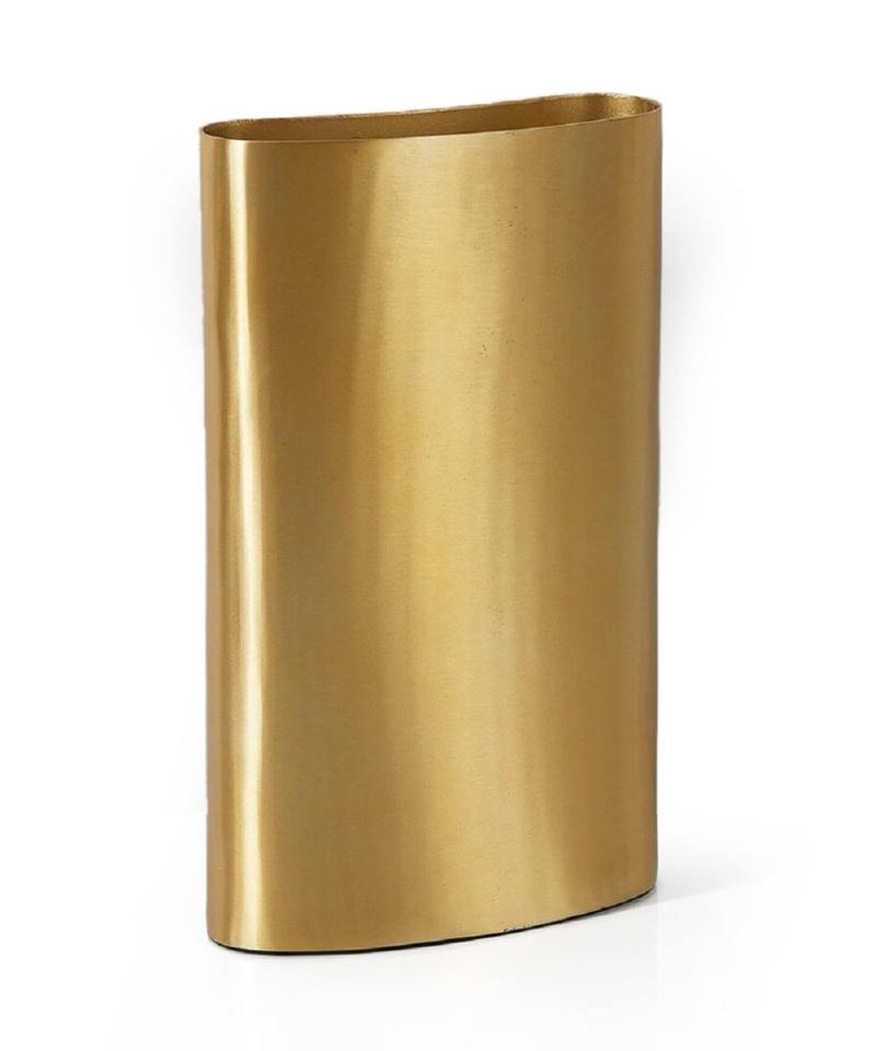 แจกันตั้งโต๊ะทำจากโลหะสีทองแปรงที่ทันสมัยพร้อมรูปวงรีทรงเรียบทองเหลืองซาติน