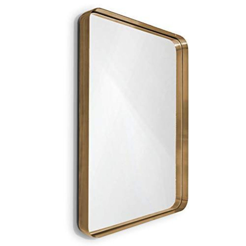 กระจกติดผนังทรงสี่เหลี่ยมมุมโค้งมน สีทองขัดเงา สไตล์โมเดิร์น สำหรับตกแต่งห้องน้ำและห้องนอน
