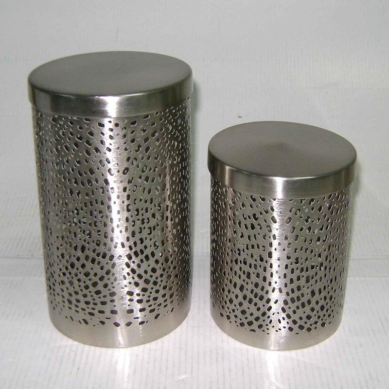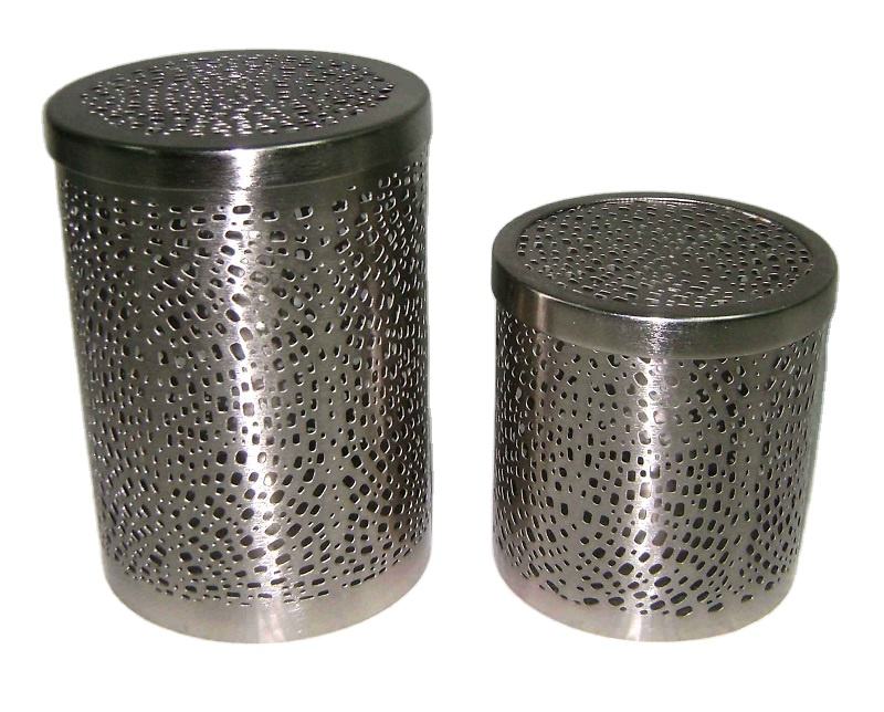 ชุดกระป๋องสแตนเลสขัดเงาแบบโมเดิร์น กระป๋องโลหะแบบมีรูพรุนสำหรับเก็บอาหาร ฝาปิดแน่นสนิท ทนทาน ใช้สำหรับเก็บอาหาร