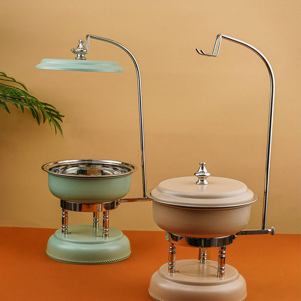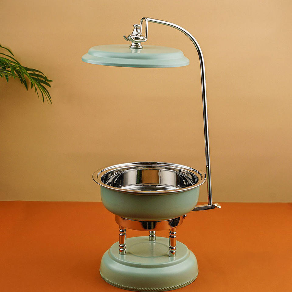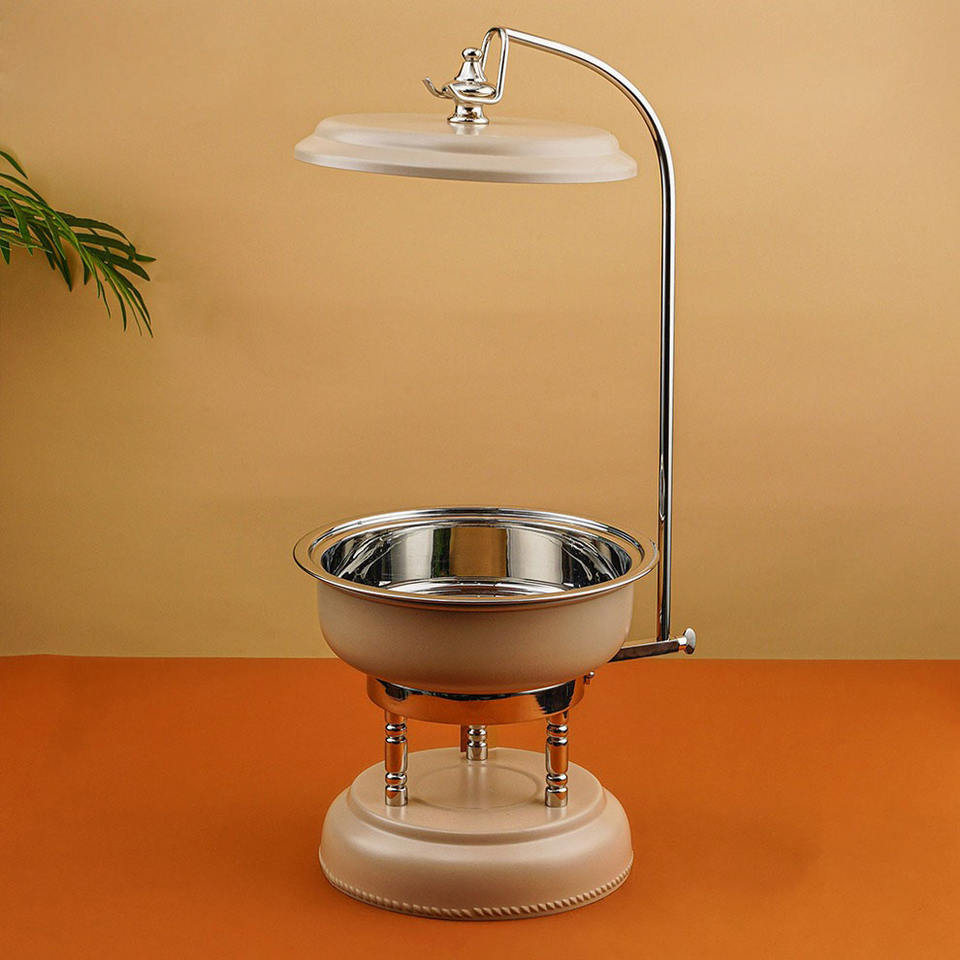 ชุดอุ่นอาหารบุฟเฟ่ต์ทันสมัยพร้อมที่วางฝาโค้งโครเมียม ดีไซน์หรูหราสำหรับโรงแรม งานจัดเลี้ยง และตกแต่งงานอีเว้นท์ในตะวันออกกลาง