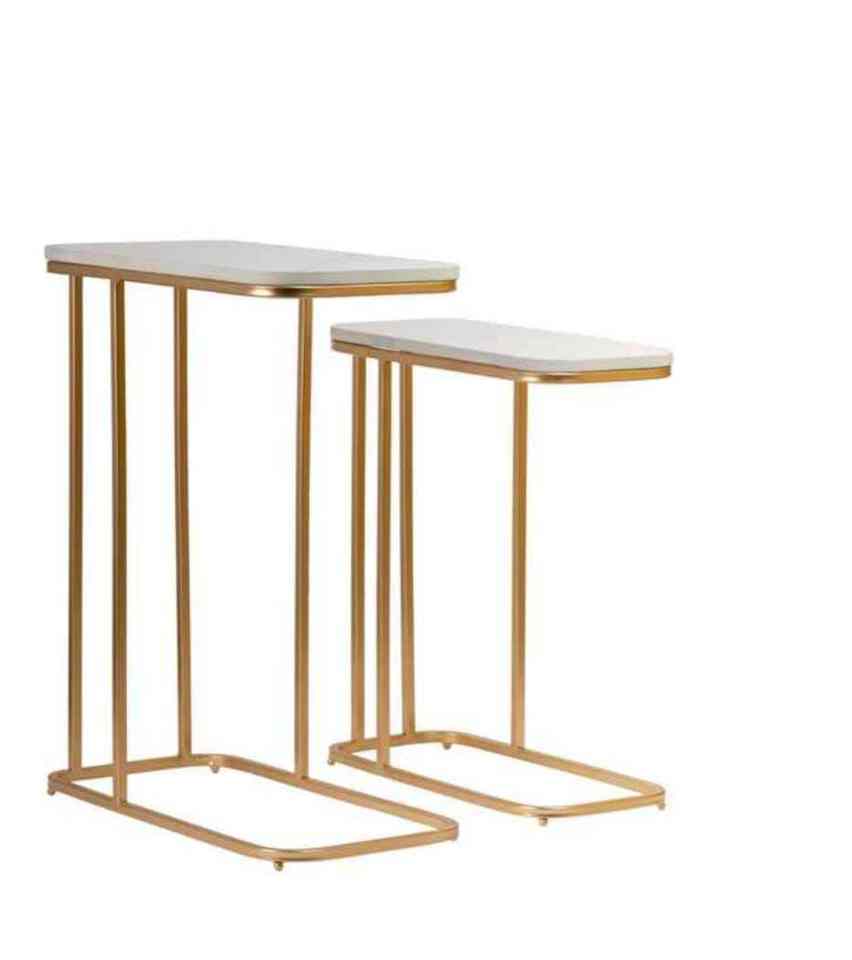 โต๊ะข้างเป็นโครงโลหะรูปตัว C ที่ทันสมัยสำหรับโซฟาและเตียงนอนโต๊ะด้านบนทำจากไม้/หินอ่อนพร้อมฐานเหล็กสีทอง
