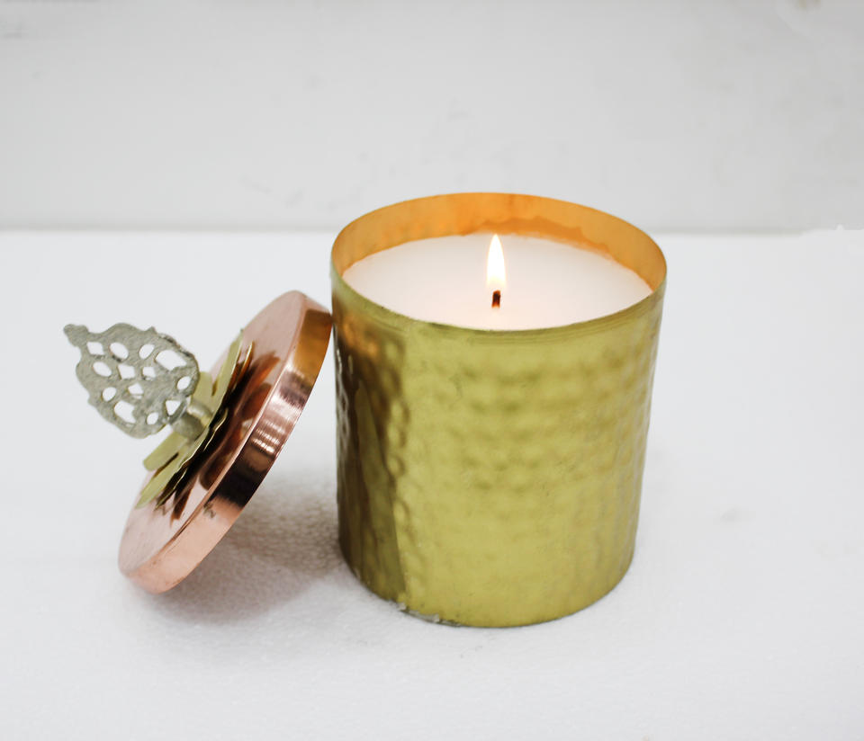 โถเทียนทันสมัยเทียนเหล็กธรรมดาพร้อมฝาปิดขี้ผึ้งหม้อทองเหลืองภาชนะบรรจุเทียนหรูหรากล่องเหล็กอลูมิเนียมทองแดง