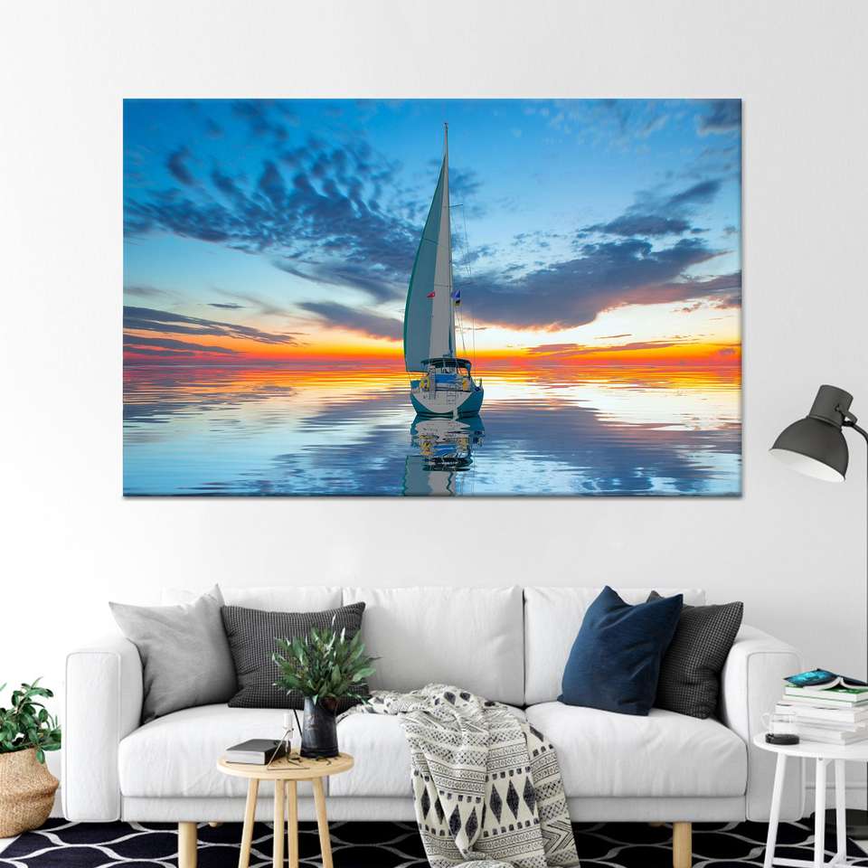 ภาพพิมพ์บนผ้าใบสมัยใหม่: ภาพตกแต่งผนังเรือใบยามพระอาทิตย์ตกดิน, ผ้าใบพิมพ์ลาย 1 ชิ้น