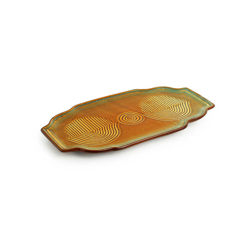จานเซรามิกแกะสลักด้วยมือสีน้ำตาลคาราเมลแบบทันสมัยสำหรับงานแต่งงานและงานเฉลิมฉลองเทศกาลดิวาลี