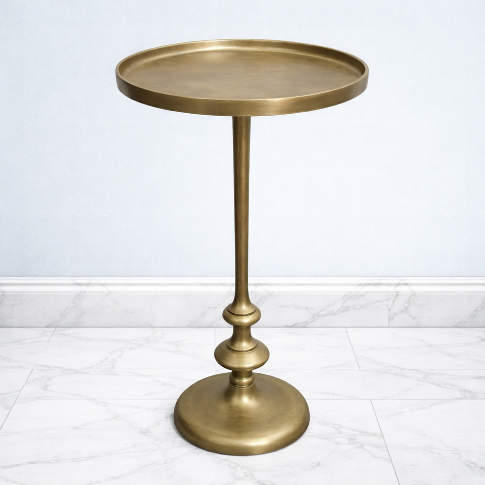 โต๊ะบาร์อะลูมิเนียมหล่อขึ้นรูปทรงทันสมัย หน้าโต๊ะทรงกลมขนาดใหญ่ ผิวสัมผัสเรียบเนียนแบบซาติน ฐานตั้งทรงกระบอกแข็งแรง ประหยัดพื้นที่ สวยงามมีสไตล์ เหมาะสำหรับตกแต่งห้องนั่งเล่น