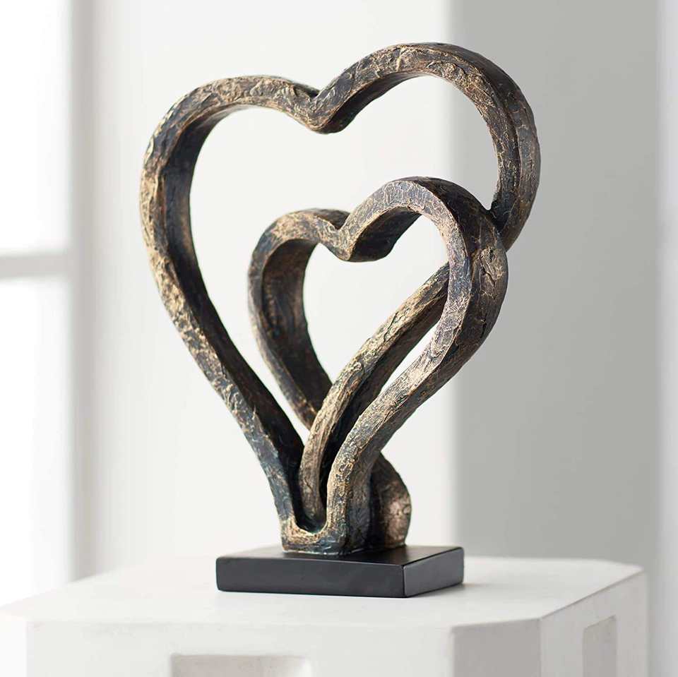 ประติมากรรมรูปหัวใจคู่เหล็กหล่อสมัยใหม่ ของตกแต่งบ้านสไตล์ศิลปะ