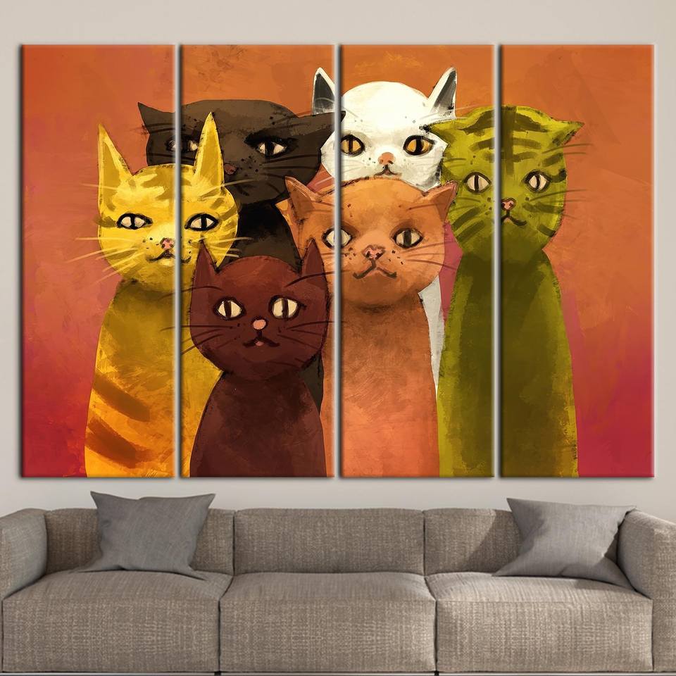 ศิลปะบนผืนผ้าใบลายแมวสมัยใหม่: โปสเตอร์แมวแบบนามธรรม, ของตกแต่งผนังแบบพิมพ์, 4P: ห่อหุ้มแบบแกลเลอรี