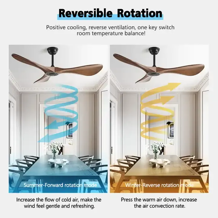 พัดลมเพดานทันสมัยพร้อมใบพัดไม้ ABS 3 ใบ มอเตอร์สีดำ รีโมทคอนโทรล ทำงานเงียบ สำหรับห้องนั่งเล่น ตกแต่งบ้าน