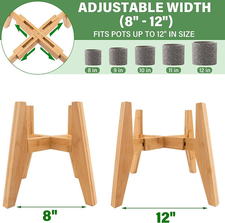 ชั้นไม้ไผ่สำหรับวางกระถางต้นไม้ขนาด8-12นิ้วชั้นวางดอกไม้แบบปรับได้สไตล์โมเดิร์น