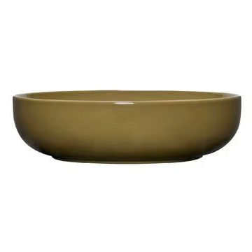 Modern Ceramic Serving Bowl Warm Mustard Glaze Wide Shallow Profile Durable Food Safe Perfect For Stylish Everyday Dining