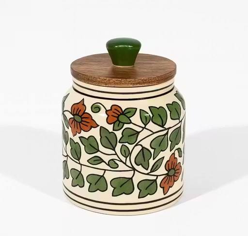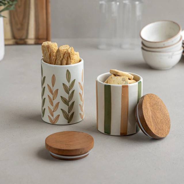 โถเซรามิคสมัยใหม่ ฝาไม้ ปิดสนิท ใช้จัดระเบียบในครัว ลายเรียบง่าย ทนทาน ปลอดภัยสำหรับอาหาร
