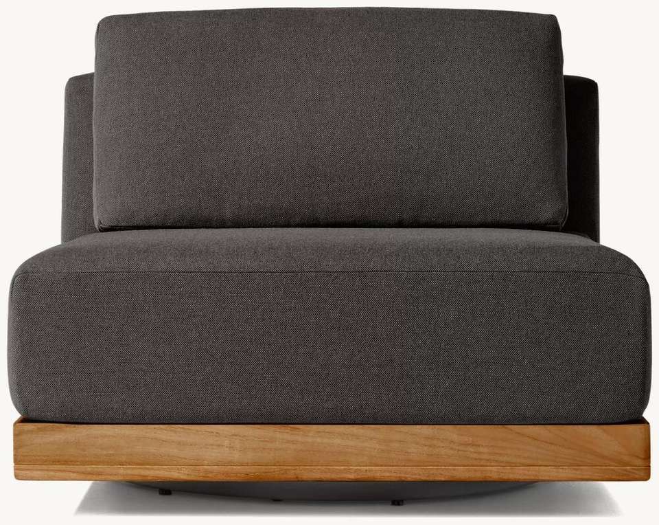 เก้าอี้โมเดิร์นสำหรับกลางแจ้ง ผ้าหุ้มเบาะแห้งเร็ว หนานุ่ม โครงไม้สัก เก้าอี้พักผ่อนแบบหมุนได้