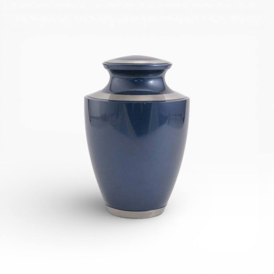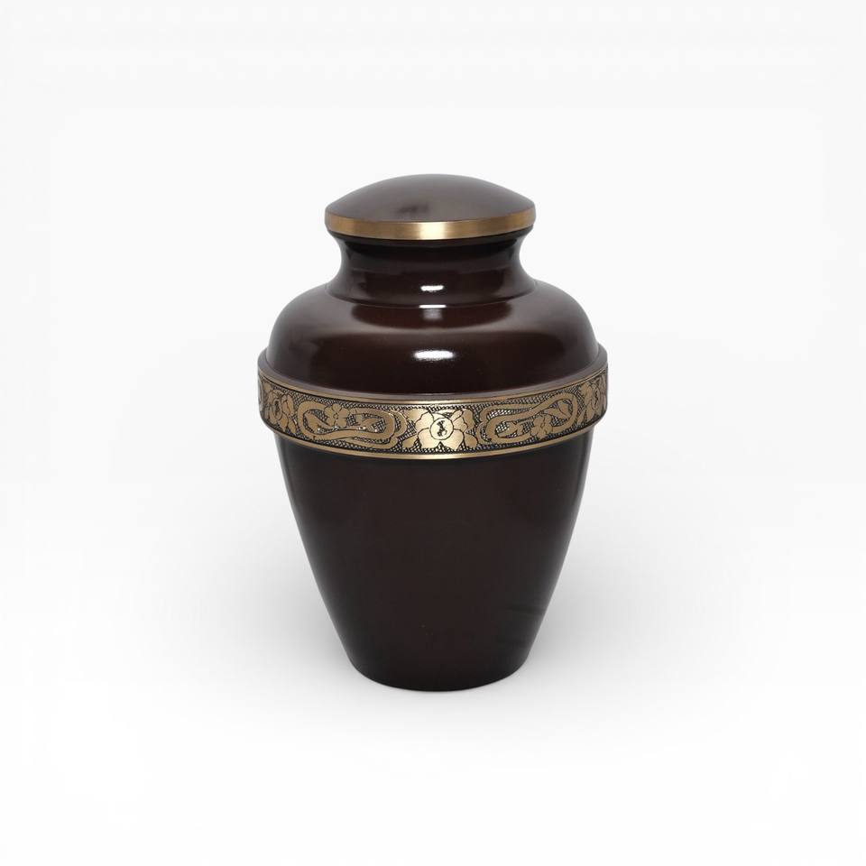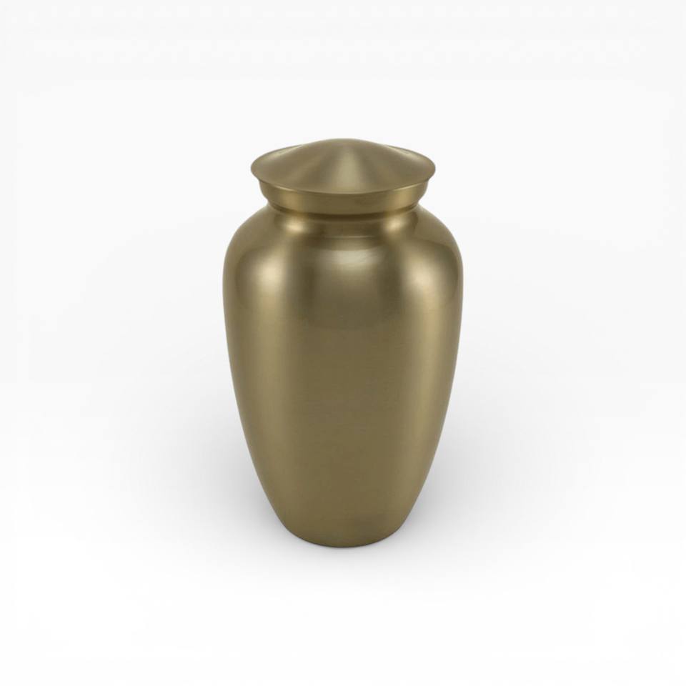 โกศบรรจุอัฐิโลหะสีทองแชมเปญแบบโมเดิร์น ขัดเงา รูปทรงโค้งมนเรียบเนียน พร้อมฝาปิดแน่นหนา