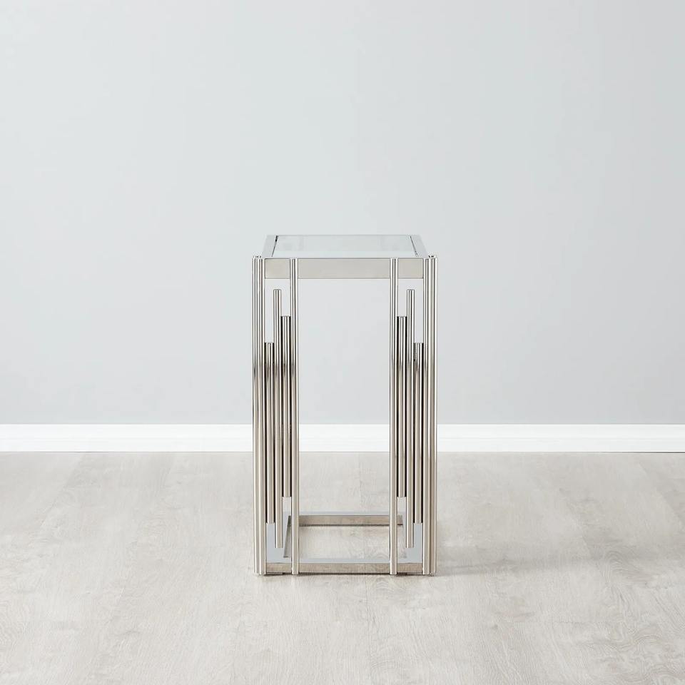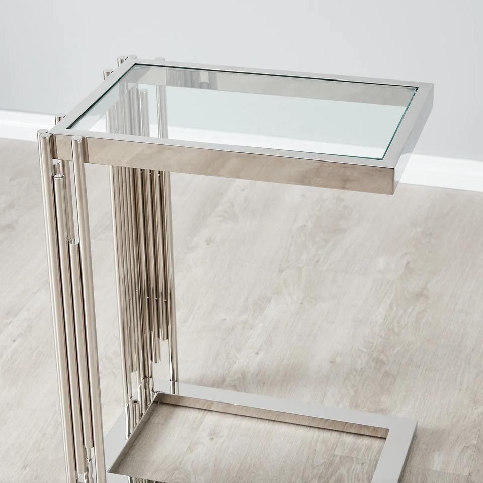 Modern Chrome Accent Table with Two Polished Plated Legs Tempered Glass Top Best Coffee Table for Living Room Furniture