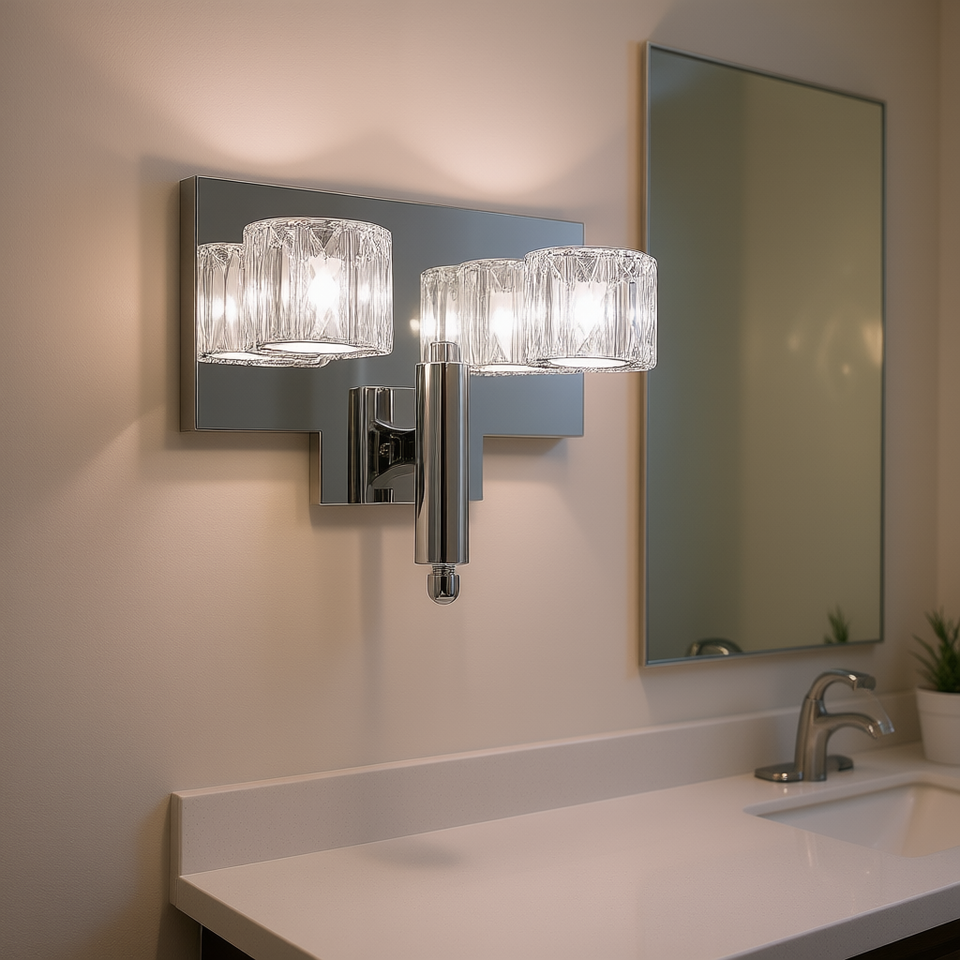โคมไฟติดผนังโครเมียมทันสมัย 6 ดวง ไฟ LED สำหรับห้องน้ำ ห้องนอน และทางเดิน พร้อมคริสตัลตกแต่ง