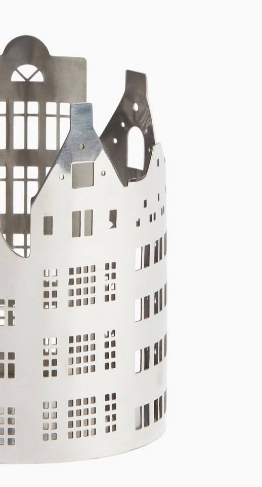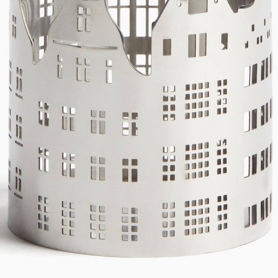 เชิงเทียนโลหะลายเส้นขอบฟ้าเมืองสมัยใหม่ ตัดด้วยเลเซอร์ รูปทรงบ้าน โคมไฟเทียนสไตล์นอร์ดิก สำหรับตกแต่งโต๊ะในวันหยุด
