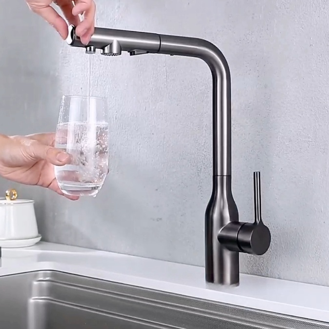 ก๊อกน้ำห้องครัวแบบดึงลง ดีไซน์คลาสสิกทันสมัย โครเมียม หมุนได้ 360 องศา แกนเซรามิก แม่เหล็ก ควบคุมด้วยมือเดียว ผิวปัดด้าน น้ำร้อน-น้ำเย็น