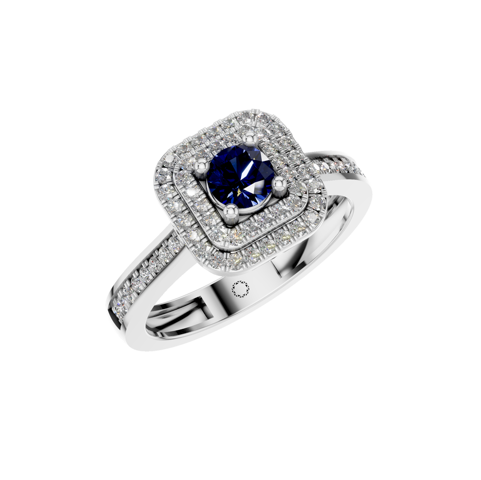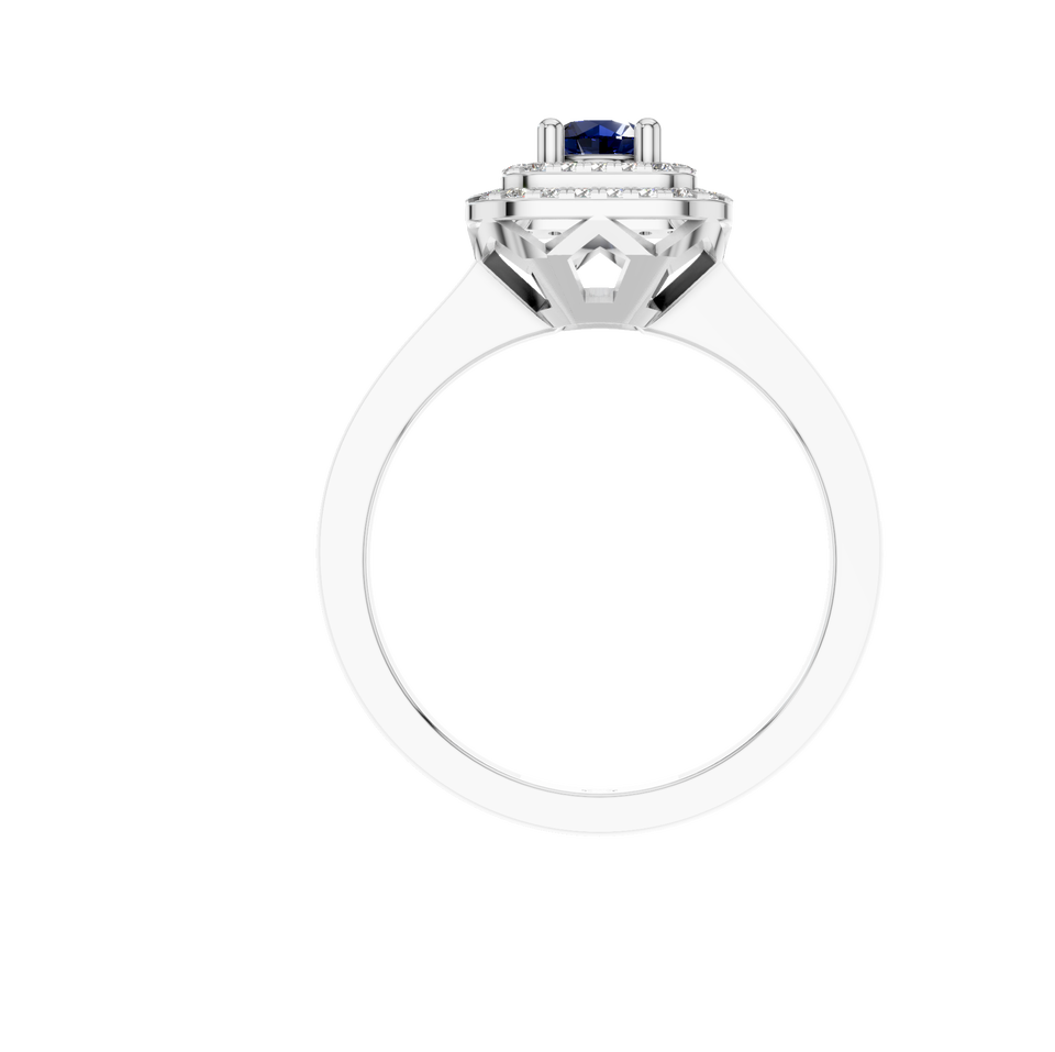 Style:Natural Sapphire Gemstone Ring with Double Halo of Natural Diamonds