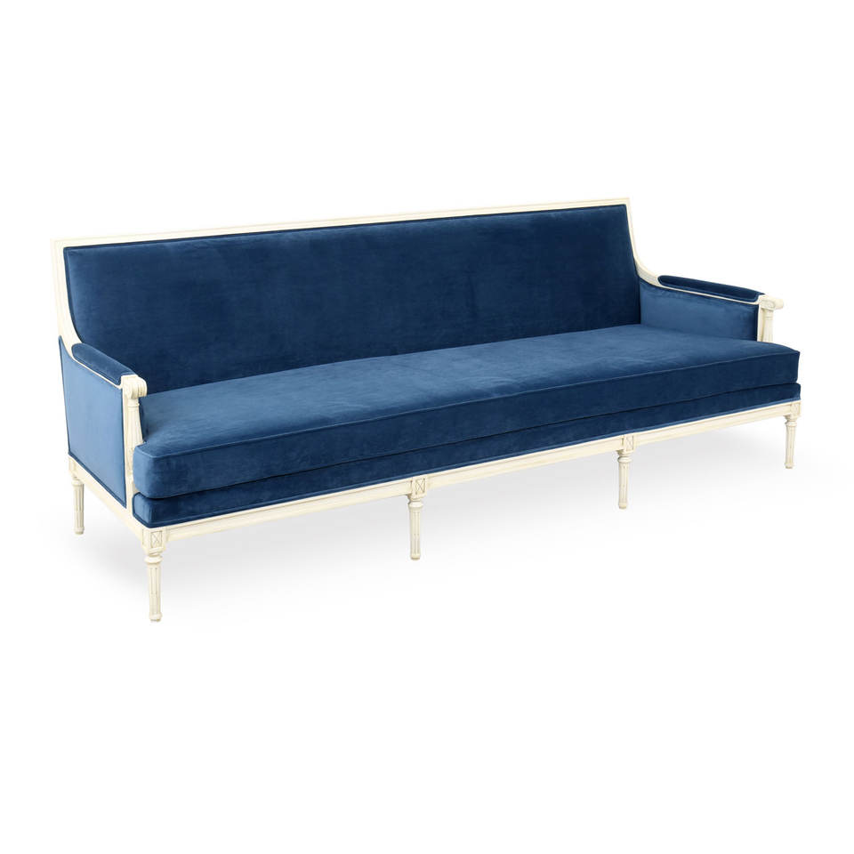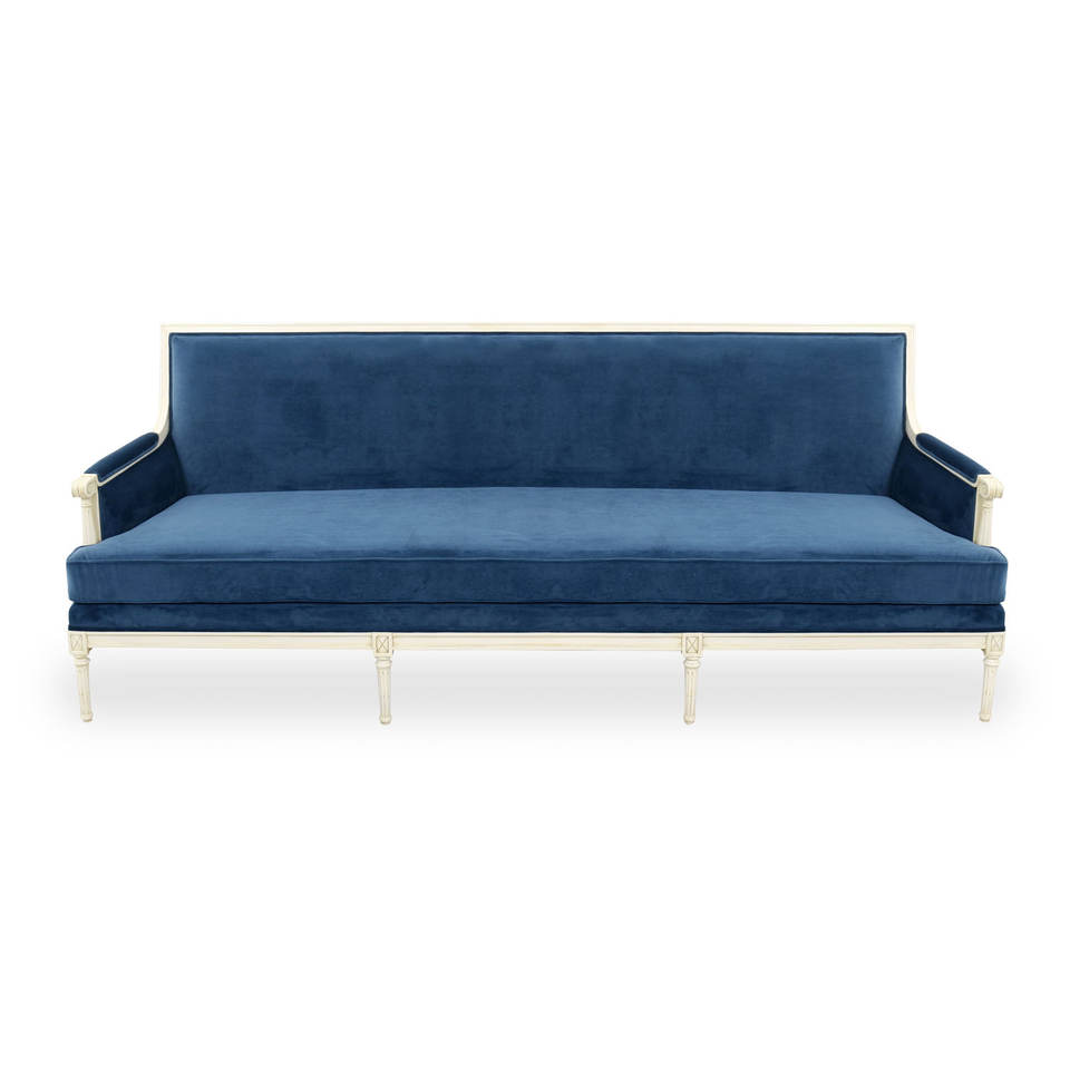 โซฟาห้องนั่งเล่นสไตล์ยุโรปคลาสสิกสมัยใหม่ โครงไม้สักแท้ หุ้มผ้าบุเบาะพนักพิงสวยงาม โซฟาสามที่นั่ง