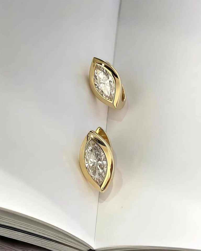 ต่างหูแบบหนีบหูทรงโมเดิร์นประดับเพชรทรงมาร์คีส์ 0.61 กะรัต เพชรเลี้ยงในห้องปฏิบัติการ ทองคำแท้ 14K ดีไซน์แบบ Huggie เครื่องประดับชั้นดีสำหรับเป็นของขวัญให้คู่รัก