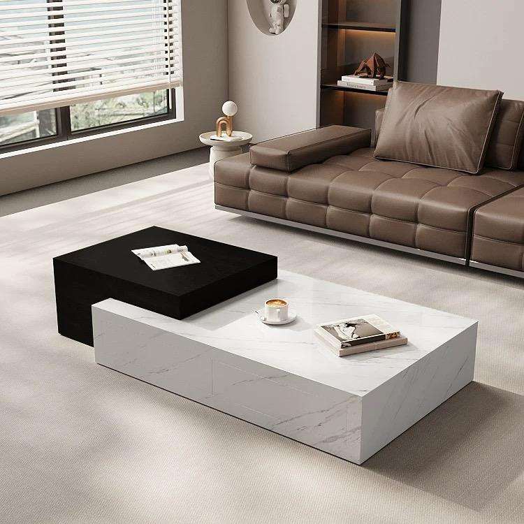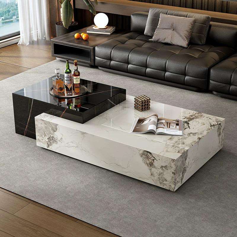 โต๊ะกาแฟทันสมัยสำหรับห้องนั่งเล่น โต๊ะกลางทรงสี่เหลี่ยมผืนผ้า ท็อปหินเคลือบเงาคุณภาพสูง พร้อมที่เก็บของสำหรับเฟอร์นิเจอร์ภายในบ้าน