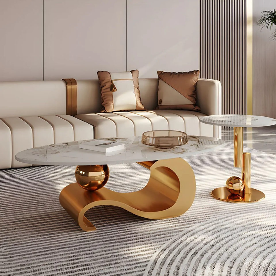 โต๊ะกาแฟแบบโมเดิร์นเฟอร์นิเจอร์โลหะสีทองกรอบโลหะโครงกระจกด้านบนกระจกแก้วขายดีที่สุดดูทันสมัย2021สำหรับการใช้ชีวิต