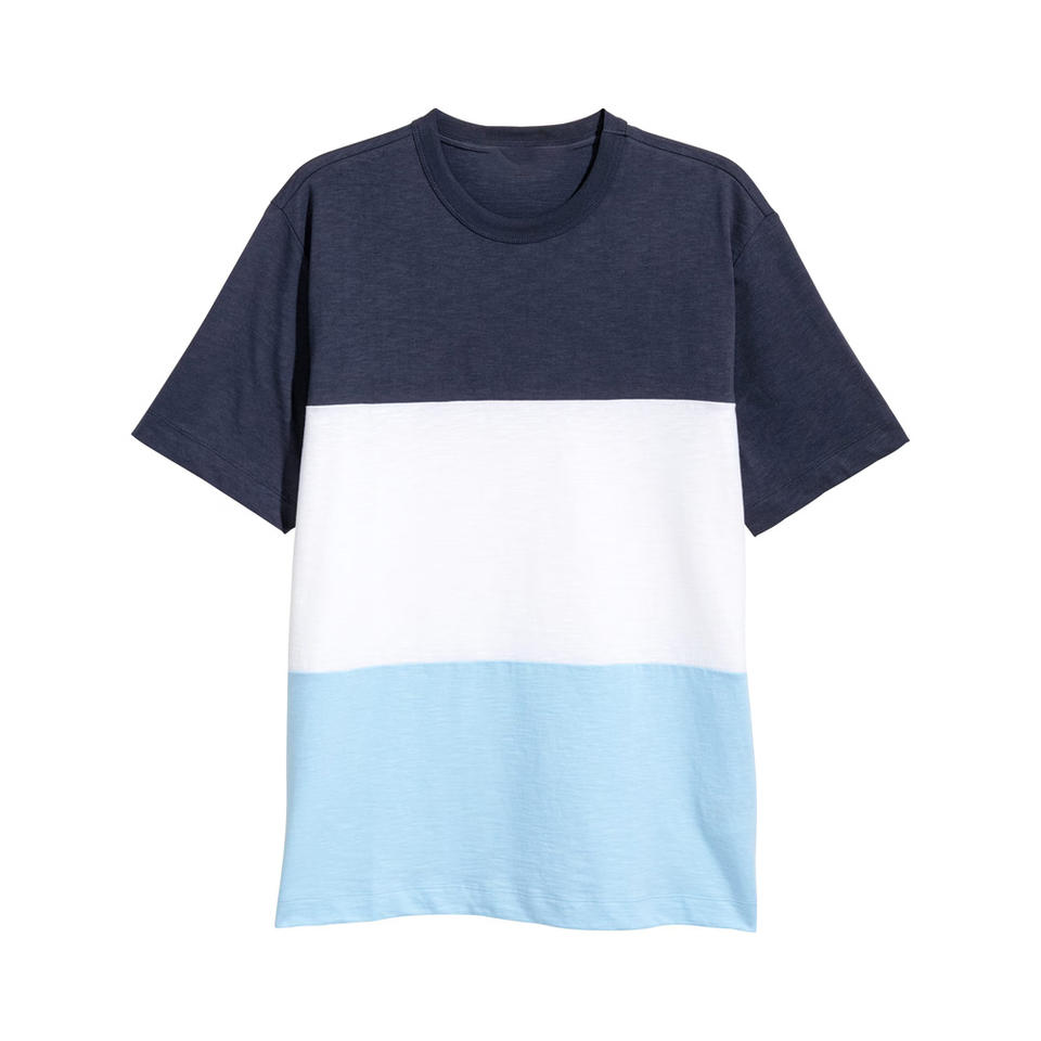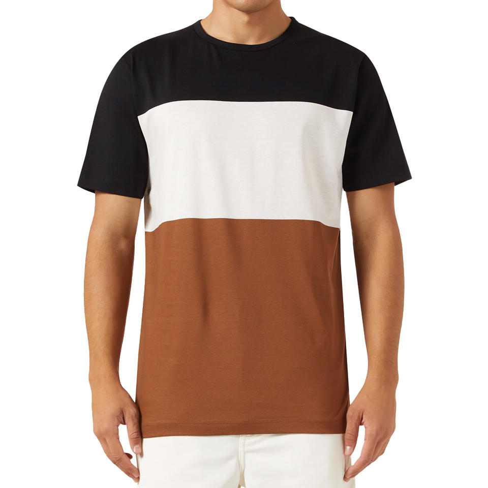 เสื้อยืดถักนิตติ้งบล็อกสีที่ทันสมัยสำหรับผู้ชายคอกลมระบายอากาศได้ดีสวมใส่สบายในเมืองทุกวัน