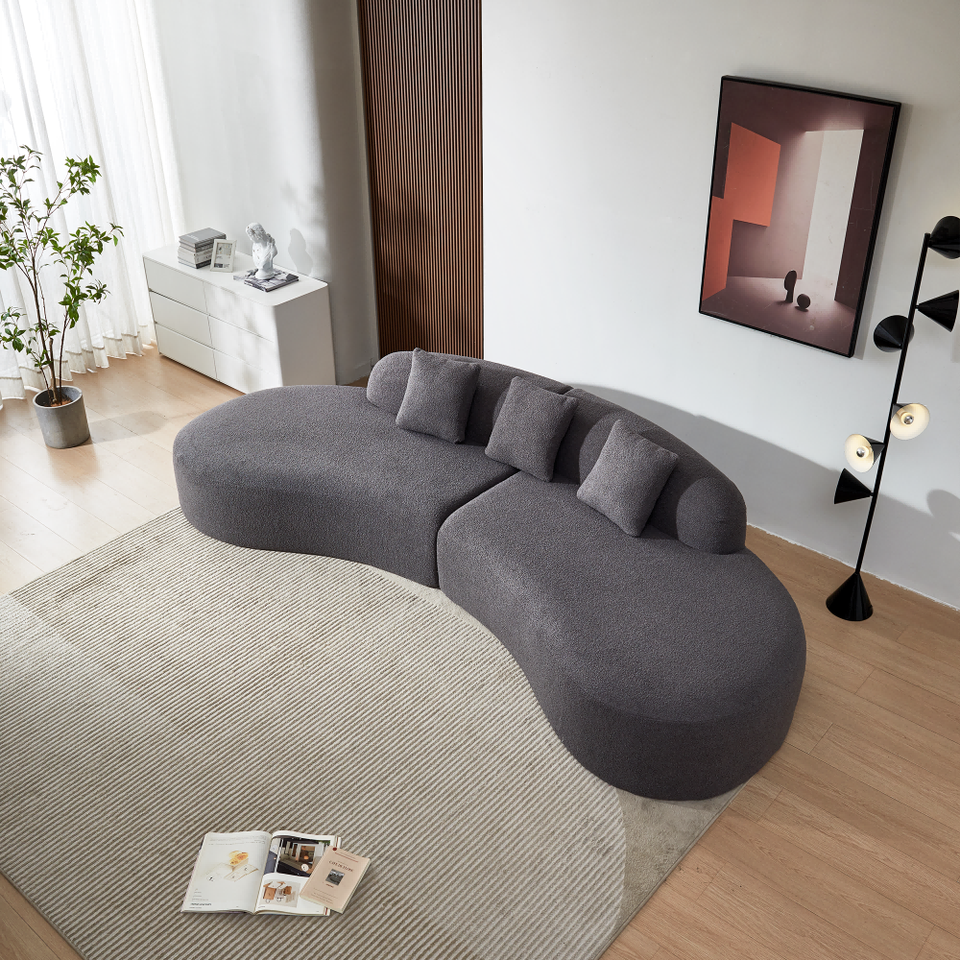 โซฟาผ้าเชอร์ปาเนื้อนุ่มแบบโมดูลาร์ทันสมัย ทนทาน รูปทรงโค้ง สีเทาเมฆ เหมาะสำหรับอพาร์ทเมนต์ ไม่ต้องประกอบ